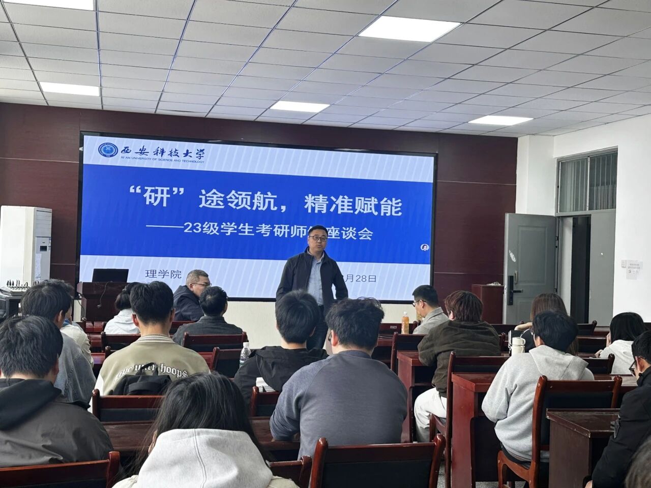 导师们结合多年教学与研究生指导经验,围绕考研形势分析、院校专业选择、复习策略制定等问题展开深入讲解。在考研方向选择上,他们系统梳理了数学专业各研究方向的前沿动态,鼓励学生立足自身兴趣与优势理性选择报考方向,强调夯实专业基础的重要性。在备考策略方面,导师们聚焦复习规划与心理建设,通过往届学生典型案例,阐释了如何将长期目标分解为阶段性任务,建议同学们建立互助学习小组,在良性竞争中共同进步。