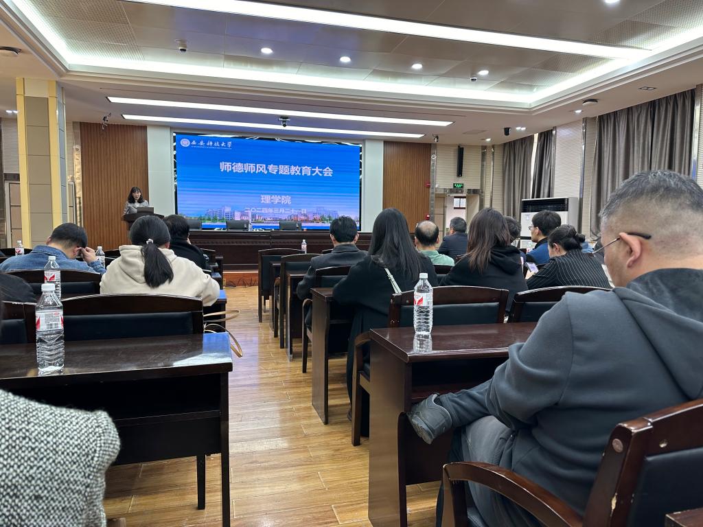师德师风专题教育会后,学院召开工作会议,安排部署近期工作。会议要求全体教职工在研究生招生期间、大学生毕业之际等特殊时期,要更加关心关爱学生,严守纪律底线,规范做好各项工作。