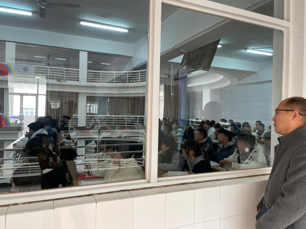 2月27日,2023年春季学期开学第一天,副院长解忧带领学院教务办深入教学一线,开展新学期教学检查。对学院师生到位情况、教师教学准备等开展检查。从检查情况来看,各位老师高度重视教学工作,为新学期开学做了大量准备工作。任课教师教学准备充分,学生听课认真,教学秩序井然。