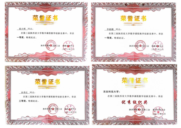 近日,在榆林学院举办的“第四届陕西高校大学数学课程建设与教学改革研讨会”公布了第三届陕西省大学数学课程教学创新竞赛的比赛结果,我院教师获得佳绩,其中梁少辉、李毅鹏两位老师获得一等奖,孙秀红老师获得三等奖,AC米兰(milan)荣获优秀组织奖。