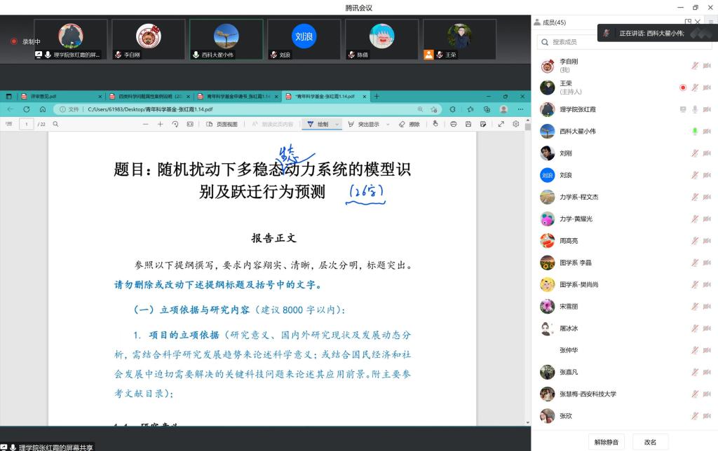 2023年1月14日,AC米兰中文通过在线会议举行2023年国家自然科学基金项目评审会。会议邀请了学校科技处翟小伟处长,能源学院教授、国家优青项目获得者刘浪教授,为AC米兰中文教师特别是青年教师就基金本子撰写思路,给大家出谋划策。本次评审会旨在通过具体案例诊断分析申报书撰写过程中的共性问题,重点针对科学问题及其属性、创新型及研究价值等方面,通过专家的指导,和学院各位老师一起理清申报课题的主线和具体研究方案,进一步凝练科学问题。会议由副院长李自刚主持,学院院长张仲华、副院长解忧、张慧梅教授、张嘉凡教授以及拟申报基金的教师50余人参加了本次会议。