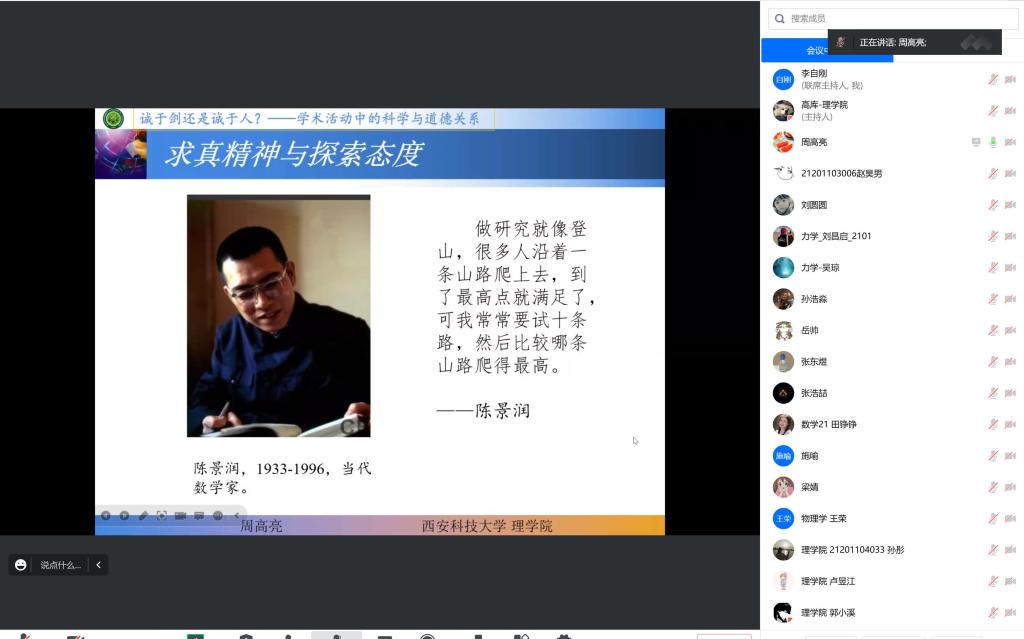 最后,副院长李自刚就研究生培养过程中常见的学风问题做了介绍,强调了学院对于学术不端行为的零容忍态度,并希望每一位老师和同学从自我做起,共同维护学术尊严。