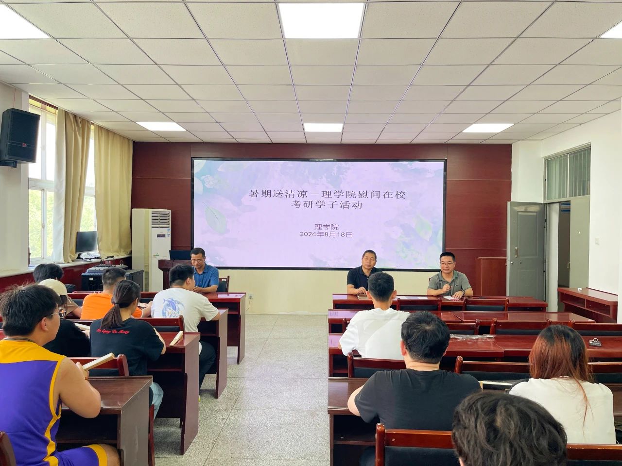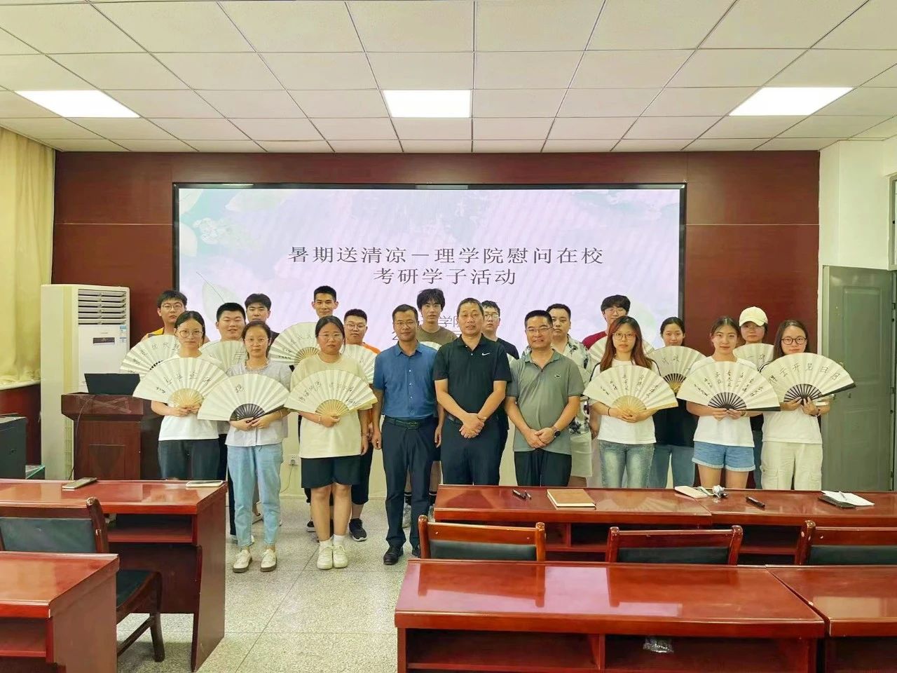 在炎炎夏日,当大多数学生享受着假期的悠闲与宁静时,我院的在校考研学子们却依然坚守在校园的一隅,用汗水与毅力铺就通往梦想的道路。为表达学院对考研学子们的深切关怀与鼓励,8月18日,我院精心策划并举办了“暑期送清凉”慰问在校考研学子活动,为这些追梦人送去了一缕清凉与满满的祝福。