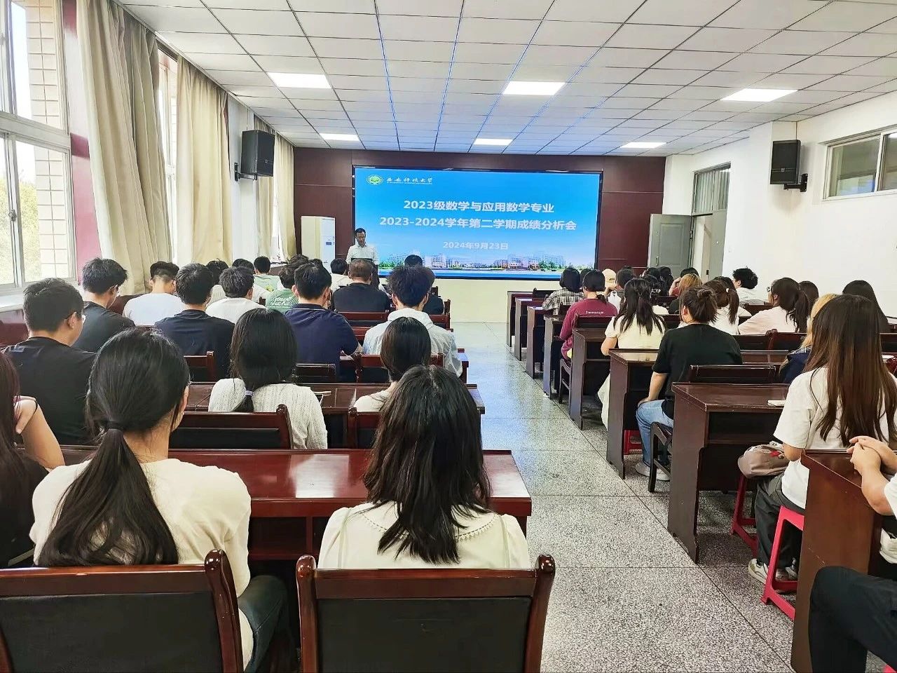 为进一步促进教学质量提升,加强学风建设,激励学生学习热情,9月23日,我院于220会议室召开了2023级数学与应用数学专业本科生成绩分析会。本次会议由2023级辅导员侯斌刚主持,院党委副书记陈伟伯、2023级数学与应用数学专业全体本科生参加。