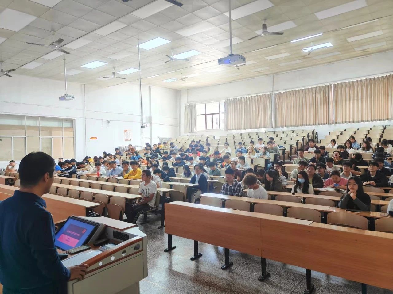 侯斌刚从出行安全、宿舍安全、交通安全、消防安全等方面入手,对同学们进行了详细的安全知识讲解,明确了注意事项和纪律要求。他强调,同学们在假期期间要严格遵守学校的规章制度,注意个人安全,确保出行安全,按时返校。对于留校的同学,要求自觉遵守学校的宿舍安全管理规定,做好宿舍防火、防盗和卫生工作,加强防骗、防传销等意识,发现可疑人员要及时向宿管或保卫处反映。