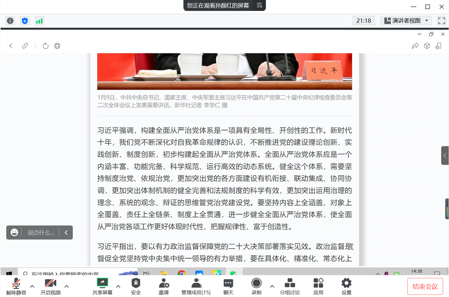 1月12日下午,AC米兰中文党委以视频会议方式召开2023年理论学习中心组(扩大)第一次学习,以“一刻不停推进全面从严治党”为主题,专题学习习近平在二十届中央纪委二次全会上发表重要讲话精神。学院班子成员、党委委员、党支部书记、系主任、实验中心主任、全体科级干部参加会议。会议由院党委书记孙颜红主持。