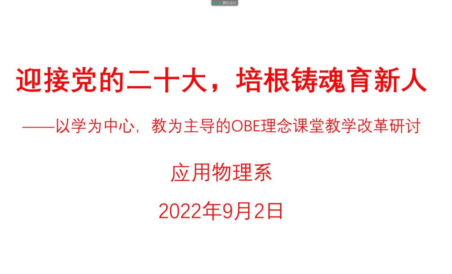 2022年9月2日下午,AC米兰中文物理系利用腾讯会议平台开展“迎接党的二十大,培根铸魂育新人”专题活动。物理系党支部书记、系主任及全体教师参加活动。