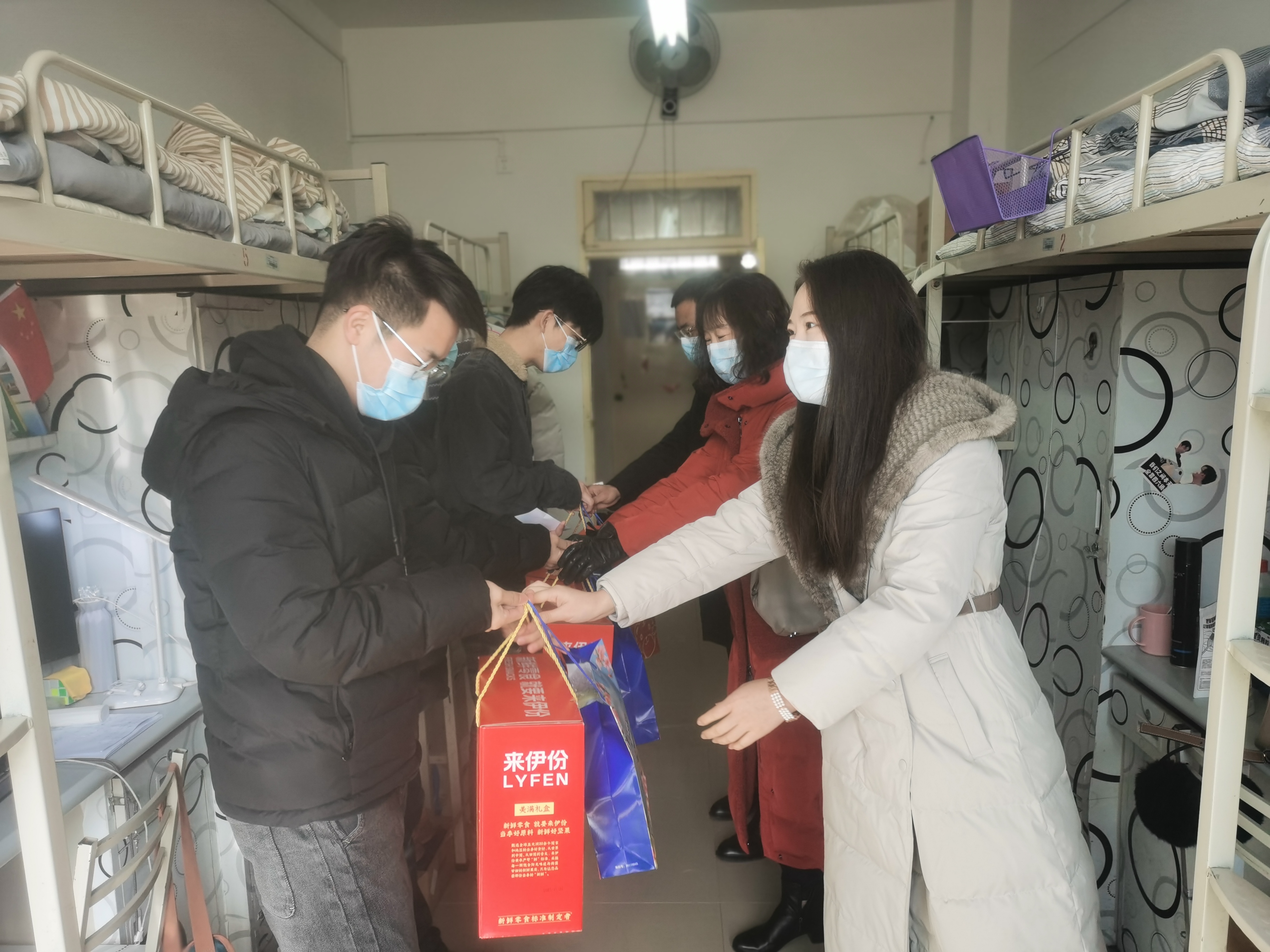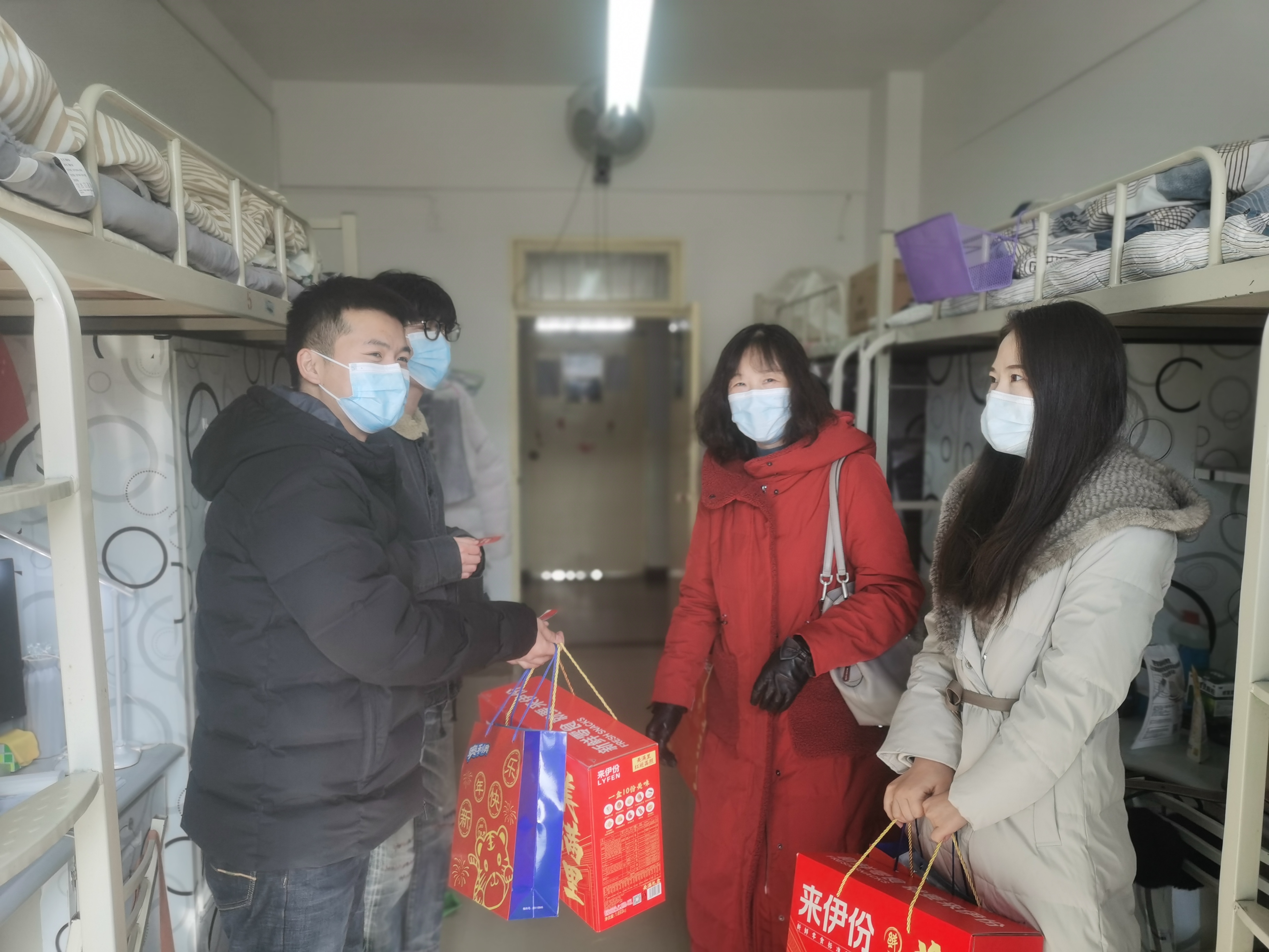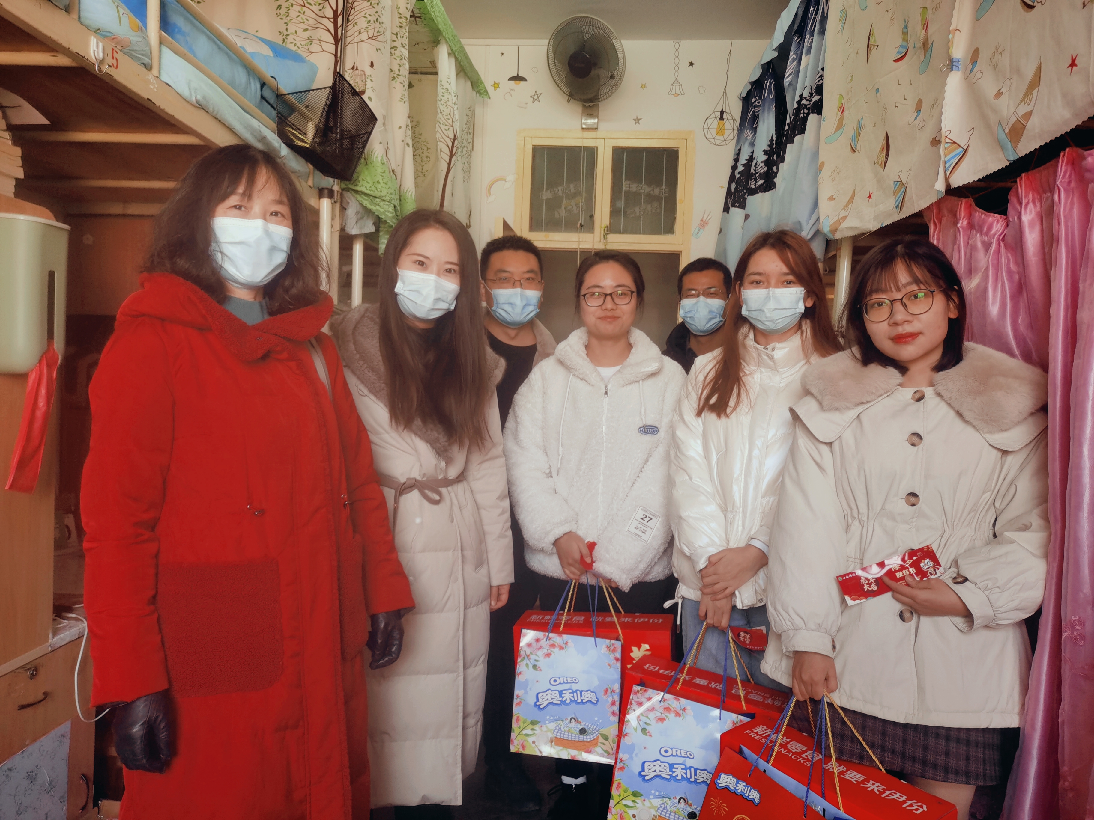 1月31日农历岁除夕,伴着久日不见的和煦暖阳,AC米兰中文党委书记孙颜红、党委副书记高欣、学工办主任赵明、辅导员侯斌刚一行走访慰问留校学生,代表学院关心留校11名同学的学习、生活情况,为学生送去新春的祝福和学院的关怀。