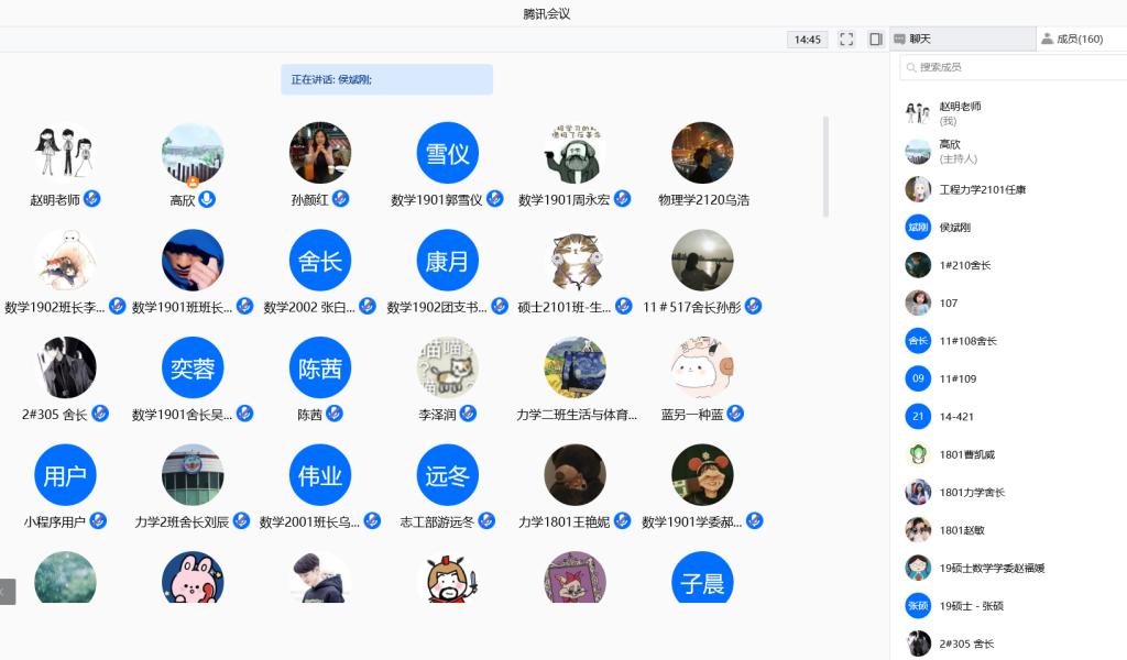 西安新冠疫情防控形势严峻,为进一步落实学校关于做好疫情防控下加强学生思想教育的要求,为加强疫情防控期间的学生动态管理与安全教育,AC米兰中文于12月28日下午2点在腾讯会议召开全体学生党员、学生干部会议。学院党委书记孙颜红、副书记高欣、学工办主任赵明、辅导员侯斌刚,全体学生党员、全体学生干部、舍长共计160人参加了会议,会议由高欣主持。
