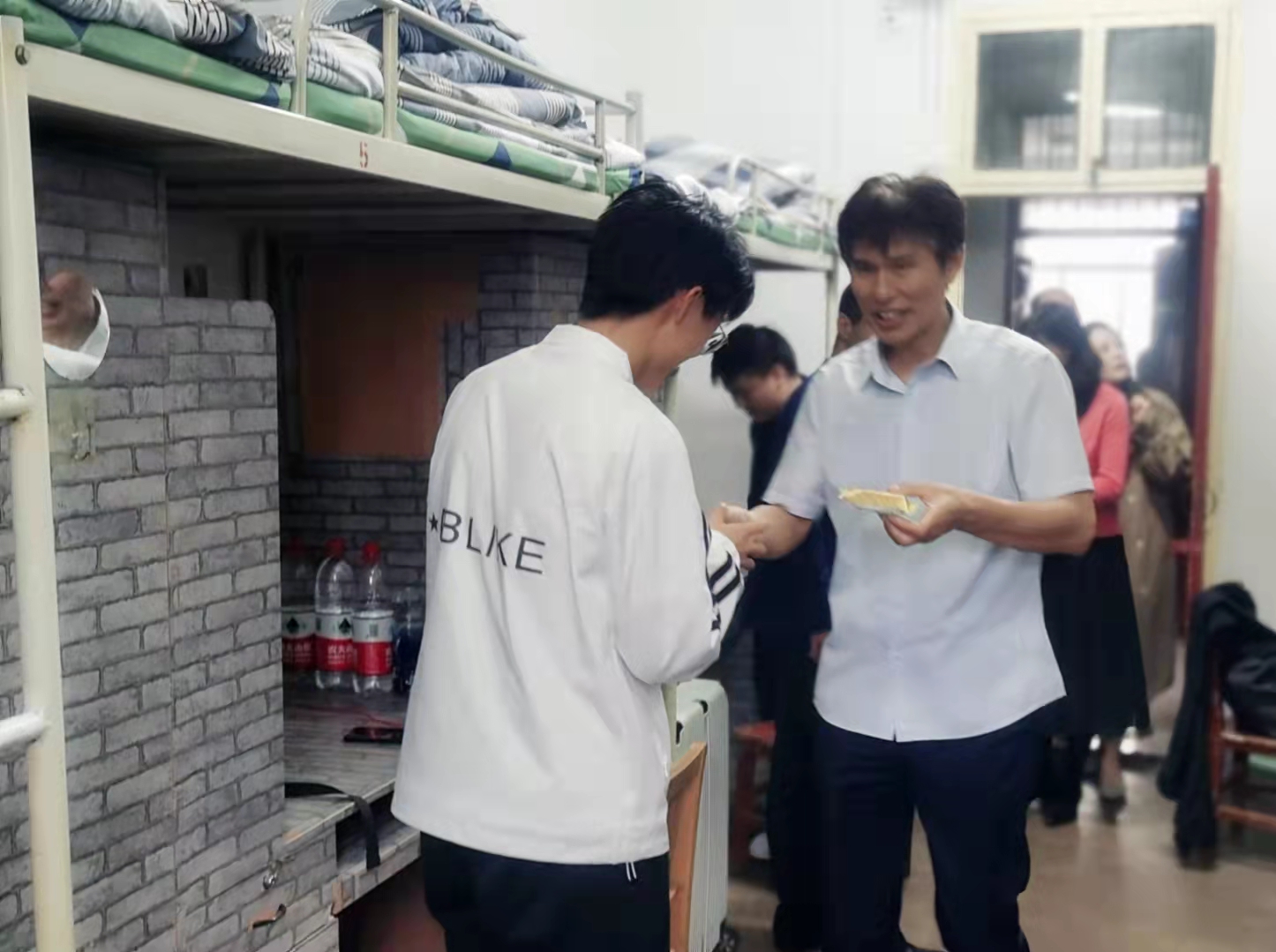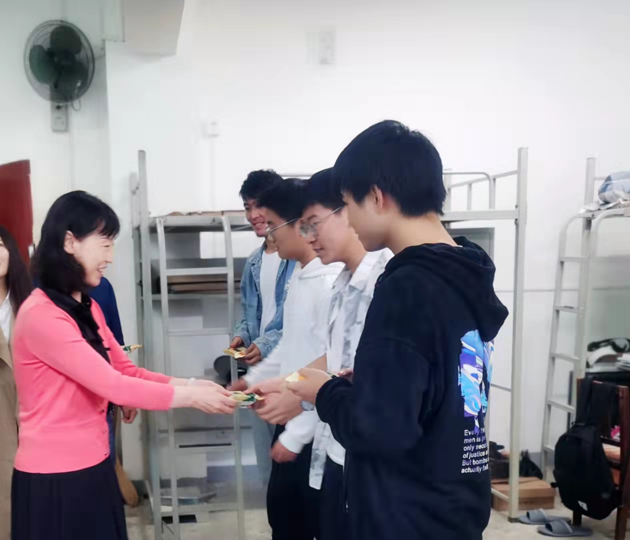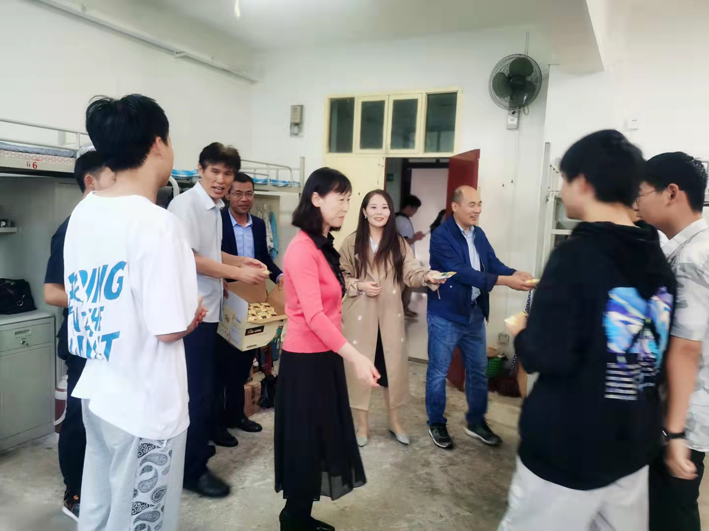 学院为表达对留校学生的关心与祝福,提前精心采购了各种口味的月饼。9月18日中午,学院班子成员及辅导员等来到2021级新生公寓,给同学们送去了香甜的月饼和节日的祝福,让同学们感受到学院的温暖和关怀。发放月饼的过程中,学院领导班子成员详细询问了近期学生学习、生活情况,同时送上中秋祝福。