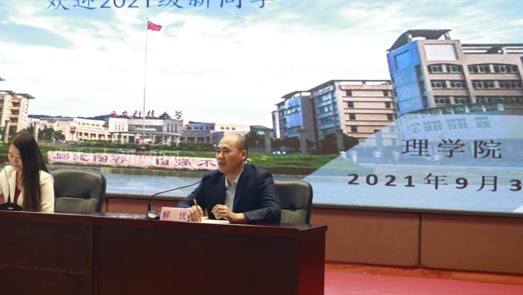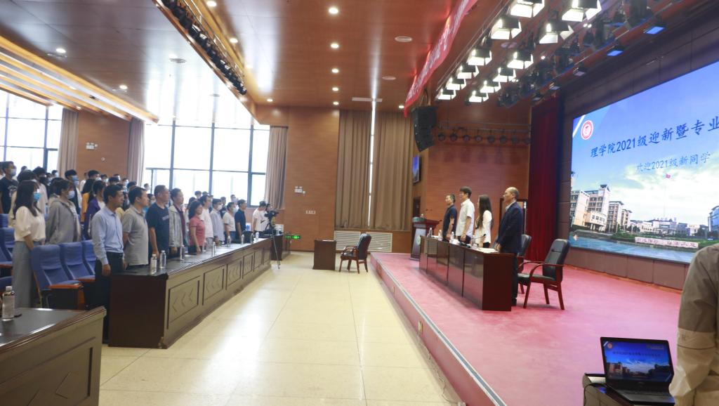 大会在雄壮的国歌声中拉开帷幕。院长李明致欢迎词,对新生的到来表示热烈欢迎及衷心祝贺,并对学院的办学历史以及近年来的发展情况﹑取得的成绩进行了介绍。对同学们即将开始的大学生活提出建议,希望全体2021级新生珍惜时间、踏实努力、学有所成。副院长张仲华介绍了学院研究生招生、培养等方面的情况。副院长解忧介绍了学院本科生教育、学科科技竞赛、考研等方面的情况 。教师代表李自刚结合自己求学和工作经历,希望全体新生利用学校和学院提供的各种学习资源和平台,善于创新,勇于探索,在学业上能够取得优异的成绩。在校生代表2019级数学与应用数学专业郭雪仪同学分享了大学生活的感悟和经验。新生代表2021级力学专业研究生祝磊磊,表达了努力学习科学文化知识、提升自身能力的决心。