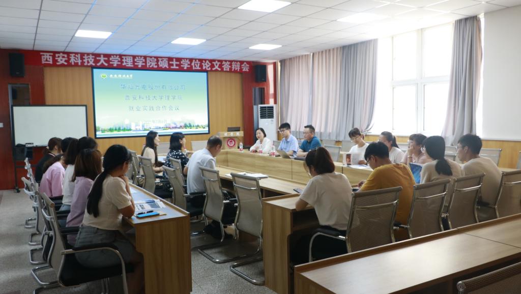 7月6日上午,华灿光电股份有限公司人力资源部集团招聘经理张振伟、红黄芯片中心副总兼肖和平等一行3人来我院走访,并在临潼校区AC米兰中文208会议室召开就业实践合作会议。AC米兰中文党委书记孙颜红、副书记高欣、副院长解忧、团委书记赵明及物理电子学全体研究生参加会议。
