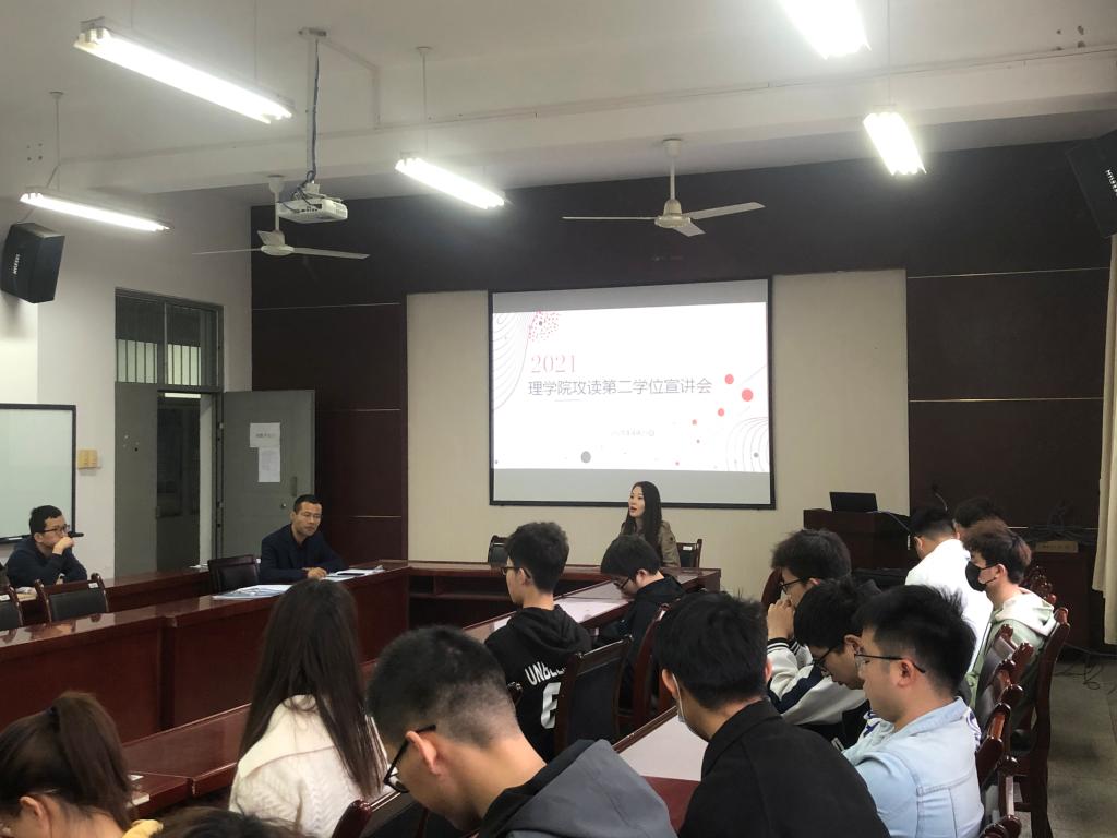 会议开始,侯斌刚首先介绍了第二学位的报考流程、专业方向、课程培养及就业前景,并逐一解答了学生的疑惑。