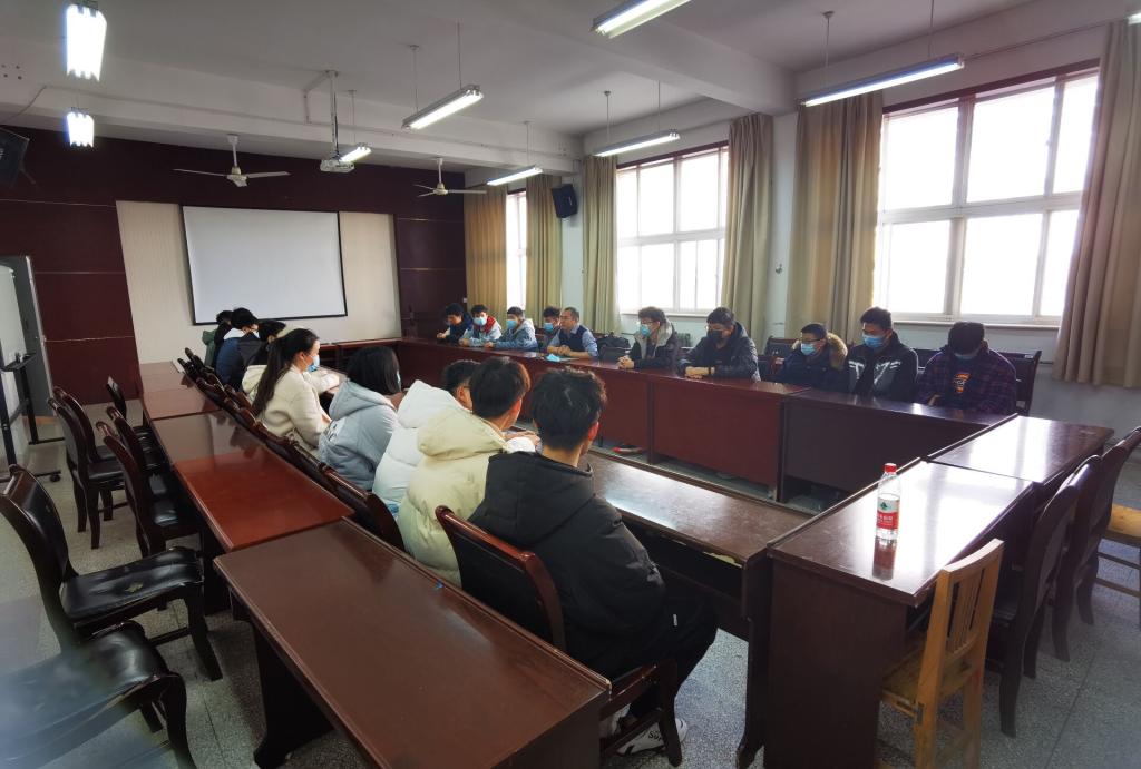 张涛老师为同学们做了期末考试考前动员,以真实案例告诉同学们如何复习提高考试成绩,摆正考试心态,并就大学生活、人际关系等方面给同学们予以指导。会议最后,张涛老师提醒同学们注意关注疫情变化,做好疫情防护,做好自我保护,为国家做贡献。