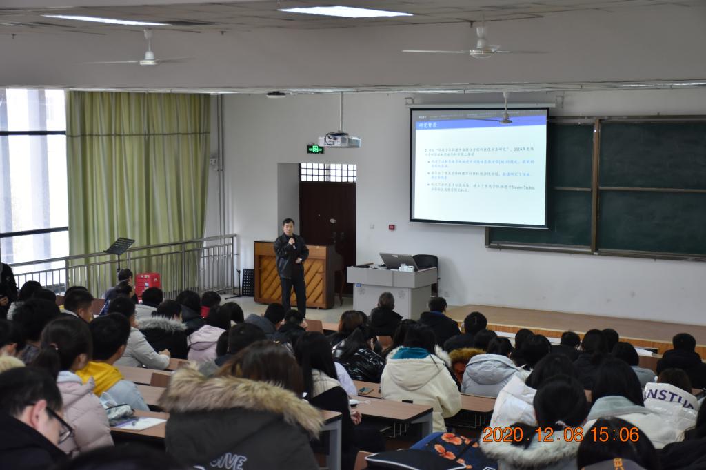 12月8日,西安交通大学梅立泉教授应邀做客我校“胡杨林大讲堂”,作了题为《等离子体物理中数学问题及其求解方法》的学术报告。报告会由研究生院主办,理学院承办,理学院副院长张仲华教授主持,全校300余名研究生及教师聆听了报告。