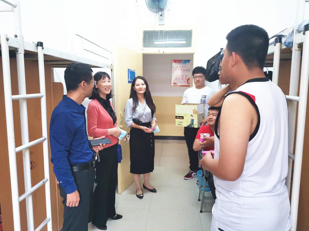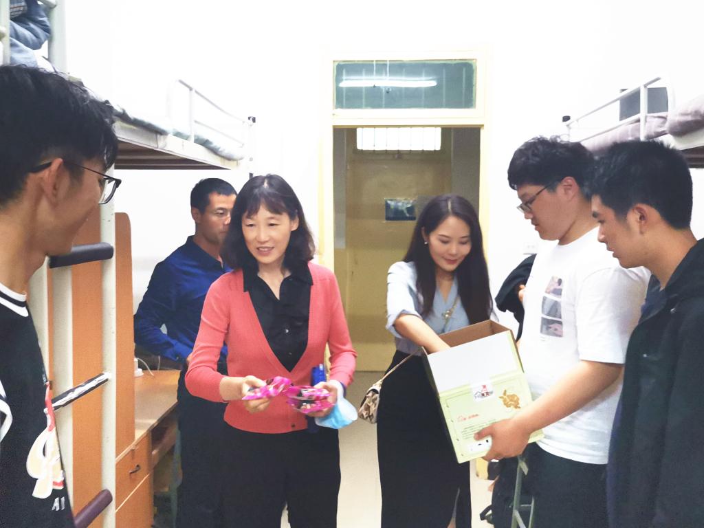 桂香万里,中秋意浓,9月29日下午,AC米兰中文党委书记孙颜红、副书记高欣、学工办主任赵明、辅导员侯斌刚来到公寓,给同学们送去了香甜的月饼和节日的祝福,让同学们感受到学院的关怀。各位老师详细的询问学习、生活情况,亲切暖心的交谈,温暖了现场每一个人的心,宿舍里荡漾着节日的温馨与笑声,洋溢着师生间浓浓的情谊。