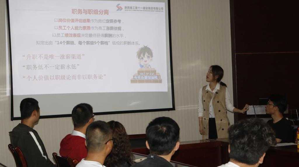 会议刚开始便简单介绍了一下陕建十一建集团。其始创于1955年9月,由中国人民解放军建筑工程第七师集体转业而来,注册资本6.28亿元,年施工能力100亿元以上。之后又说明对于本次招聘,应聘者可以把三方协议带上,合适的现场可以盖章,具体工作地点根据具体情况分配。招聘方也对应聘者提出要求,主要是面对2019普通公办院校本科及以上的专业对口的应届毕业生展开招聘。最后又将公司员工的福利进行了详细的说明,期待更多的优秀学生能够加入这个大集体。