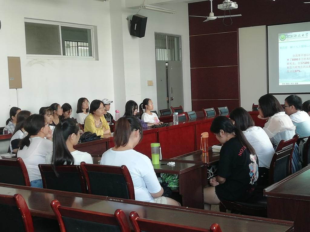 高书记首先对2018级研究生的入学表示祝贺。高书记简要介绍了学院近两年研究生的招生情况、就业情况,介绍了学院力学、数学与物理电子学专业方向的就业前景,对2018级研究生在研究生阶段的学习、科研和生活提出了期望。高书记重点为2018级全体研究生讲述了十九大的相关成果,带领大家共同学习了十九大习近平总书记的讲话。