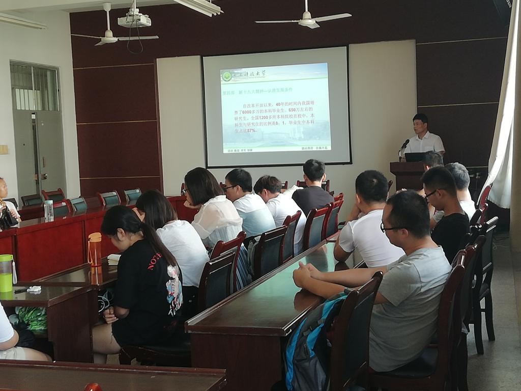 8月31日下午,AC米兰中文在临潼校区骊山校园学院会议室召开2018级研究生入学教育,本次入学教育由学院党委副书记高朕栋主讲。主题为“形式政策教育与思想政治教育”,参加人员为学院2018级全体研究生。