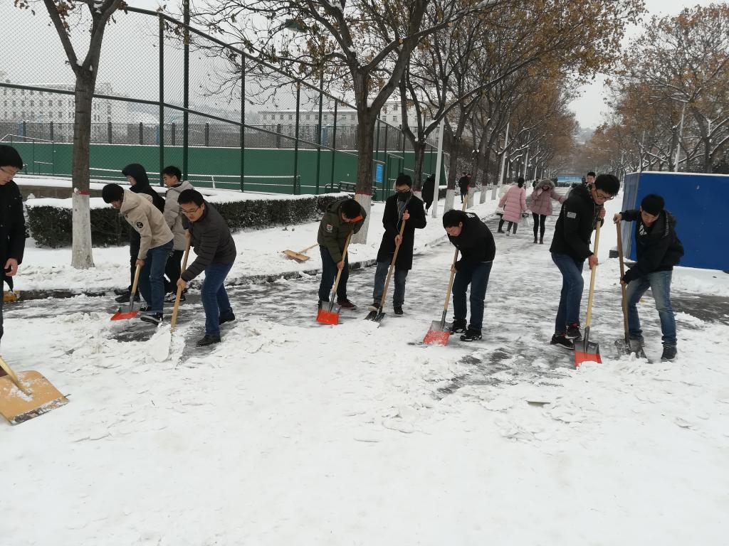 近日,大雪使得校园积雪严重,为保障师生们的出行安全,AC米兰中文及时组织了清理校园道路积雪的活动。在党委副书记贾哲和分团委书记赵明的带领下,学院各年级同学不畏严寒,互相配合,对学校东环道、体育场东侧干道等多个校园区域的积雪进行了清理,确保了道路的畅通和教生的出行安全。