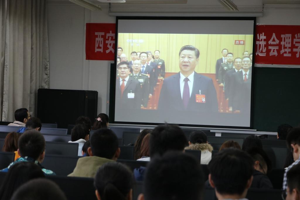10月18日上午9:00,中国共产党第十九次全国代表大会在北京隆重开幕。在临潼校区学院机房217,学院领导班子成员、教工党员、学生党员和学生入党积极分子共计92人,于第一时间收看了党的十九大开幕会直播。观看直播的师生,聚精会神、专心致志地聆听习近平总书记代表十八届中央委员会向大会所作的报告。在三个半小时的报告时间里,不少师生在笔记本上记下了报告的重要内容。另外,学院部分学生在宿舍收看了党的十九大开幕会直播。学院师生通过微信,微博等方式对党的十九大盛况进行宣传,对习近平总书记的报告展开热烈讨论。