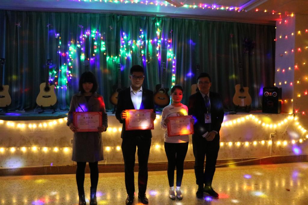 宿舍文化节颁奖仪式中,学生会主席申宇航,12届分团委副书记张堂基和16级辅导员孙嘉伟老师依次为优秀宿舍颁奖。女生小合唱《心愿》,梦幻中带点希望,完美地表达出少女心中的淡淡情怀。最后,各位老师及嘉宾合影留念。晚会在满堂欢声笑语中完满结束。