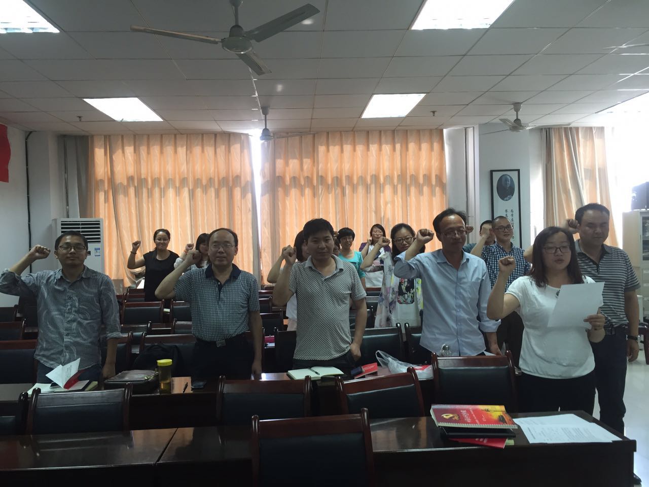 6月3日下午,AC米兰中文教工第一党支部在雁塔校区学院会议室组织“两学一做”专题学习会。宣传委员葛丹同志带领大家重温入党誓词;组织委员夏小刚同志领学《中国共产党章程》总纲部分;党支部书记杨云锋同志对第一党支部“两学一做”6月份的学习教育计划进行安排,他要求支部全体党员要深刻领会“两学一做”学习教育的重要意义,力求做到集中学习有成效、自学研读有收获、学习教育有特色、专题讨论重交流。
