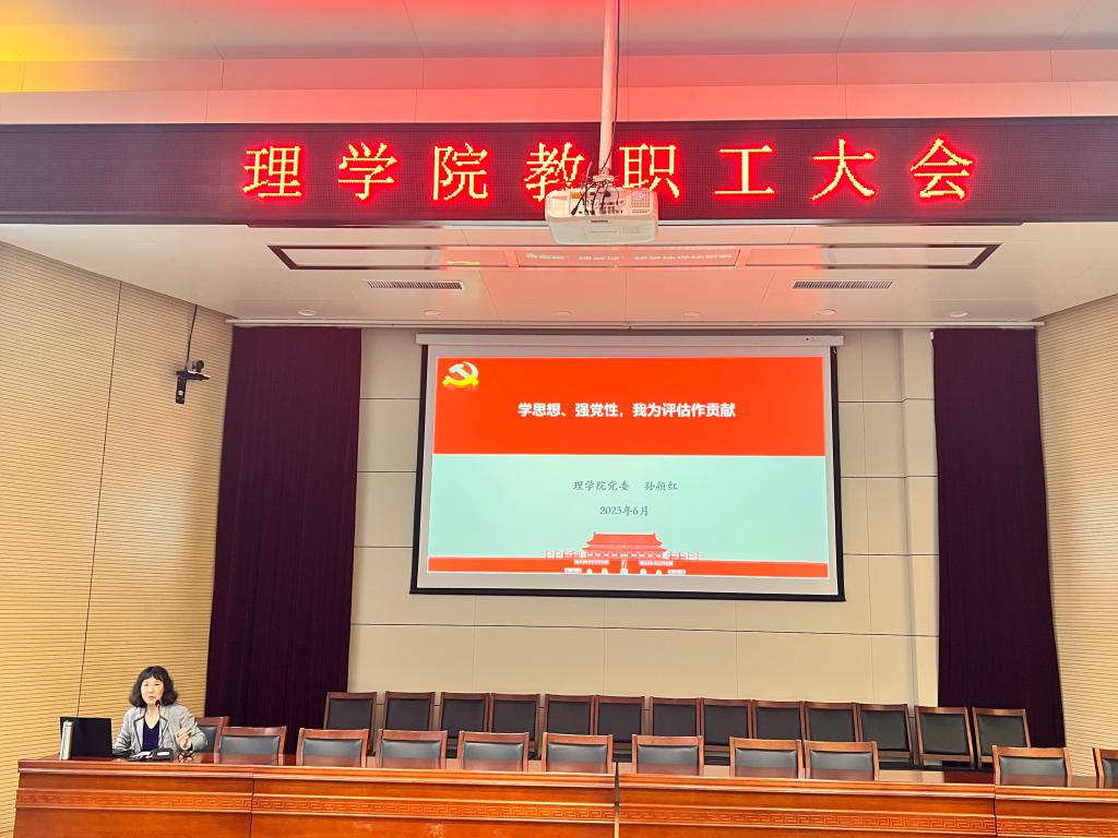 孙颜红以“学思想、强党性,我为评估做贡献”为题讲专题党课。她从学习贯彻习近平新时代中国特色社会主义思想主题教育、立德树人的成效是检验学院一切工作的根本标准、审核评估相关事项三个方面阐述了如何用理论指导实践。孙颜红讲到开展学习贯彻习近平新时代中国特色社会主义思想主题教育,要牢牢把握“学思想、强党性、重实践、建新功”的总要求,坚持学思用贯通、知信行统一,把习近平新时代中国特色社会主义思想转化为坚定理想、锤炼党性和指导实践、推动工作的强大力量。孙颜红汇报了学院“立德树人”工作开展情况,阐释了学院“三全育人”体系,并就学校发展目标、定位、学术型人才培养、质量控制体系等作了进一步解读。孙颜红讲到审核评估是当前重中之重的工作,如何攻坚克难,是对我们主题教育效果的一次检验。全体教职工要振奋精神,以最好的状态迎接审核评估专家组线上评估,在审核评估中建立新功。
