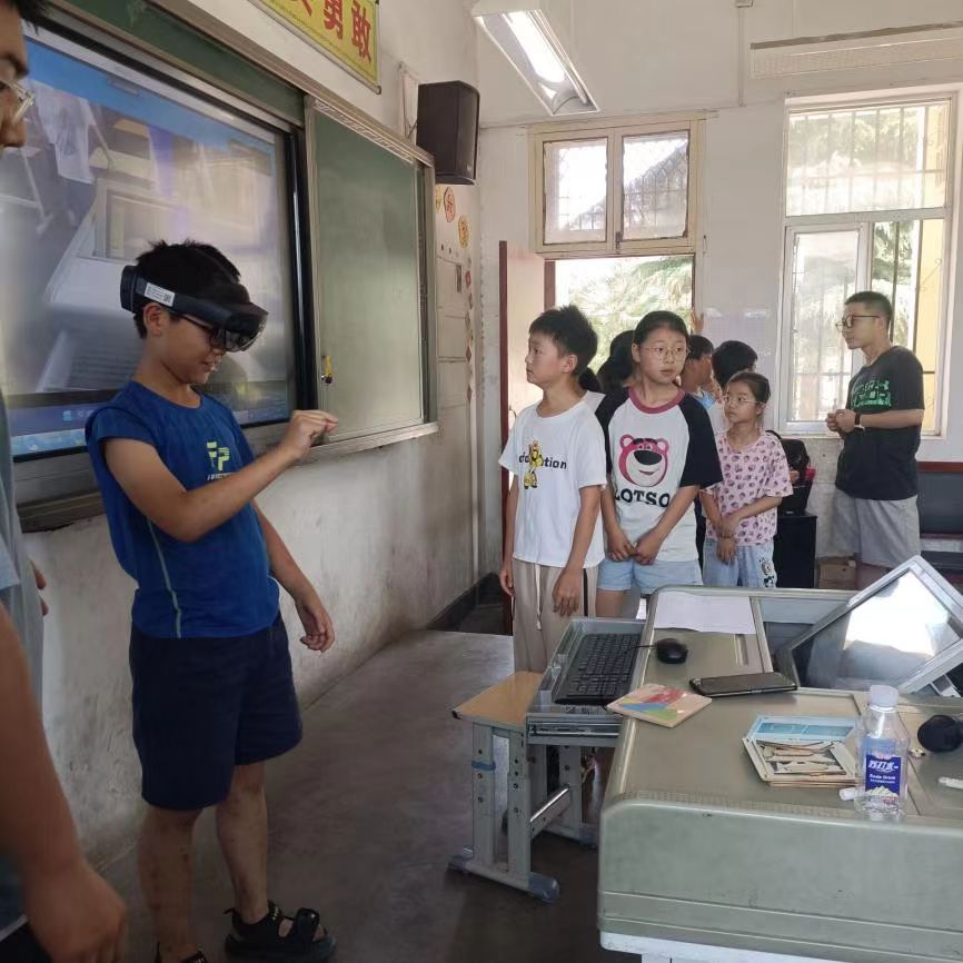 参加此次活动的团队成员韩国豪、郭新洲、辛宇航、贺汶佳、张曦元同学分别向小朋友们进行了自我介绍,向他们描述了自己的大学生活,并简要有趣地讲述了自己对MR的见解。