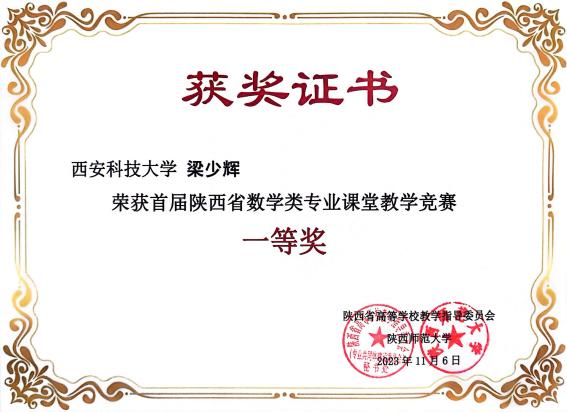 11月18日由陕西省高等学校教学指导委员会数理类工作委员会主办,西安电子科技大学数学与统计学院承办的第三届陕西省高等学校数学类专业建设研讨会隆重召开。来自全省30多所高校的陕西省高等学校教学指导委员、各高校数学类专业负责人和教师120余名代表参加了会议。AC米兰中文院长张仲华教授带领学院数学系青年教师参加了会议。期间进行了首届陕西省高校数学专业课堂教学竞赛颁奖仪式,AC米兰中文数学系教师梁少辉荣获一等奖。