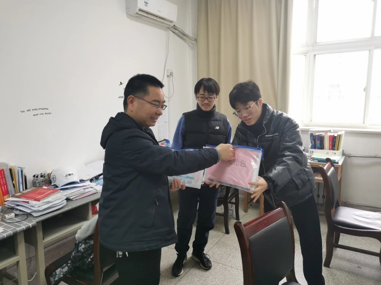 他们为在寒冷天气中备战考研的同学们发放 “考研大礼包”。老师们表示,考研的同学们复习非常辛苦,天气很冷,并且最近流感盛行,借这次送温暖的活动希望学生们不要有过多压力,放平心态,都能考出好成绩。