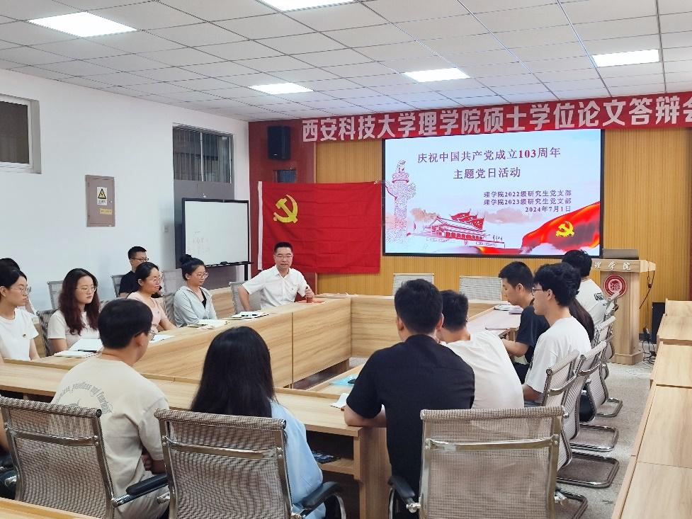 为庆祝中国共产党建党103周年,强化党员责任意识和宗旨意识,7月1日上午,我院2022级、2023级研究生党支部一同开展了“强国有我”主题党日活动,学院党委副书记陈伟伯参加活动。