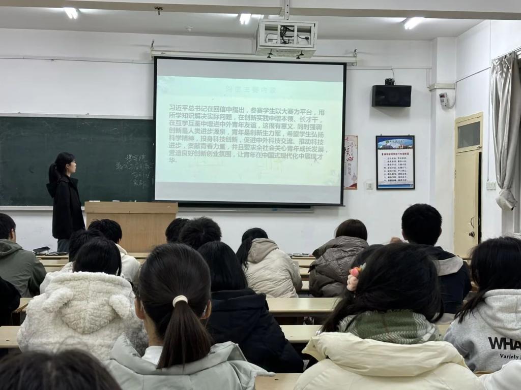 习近平总书记给中国国际大学生创新大赛参赛学生代表回信,对他们予以亲切勉励。为深入学习推进创新精神,11月24日,AC米兰中文数学与应用数学2401团支部举办了“学习习近平总书记给中国国际大学生创新大赛参赛学生代表的回信”主题团日活动。本次活动由数学与应用数学2401班团支书白雅薇主持。