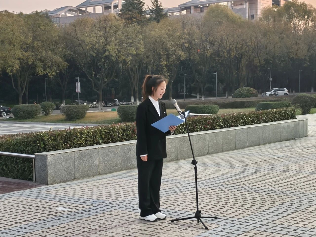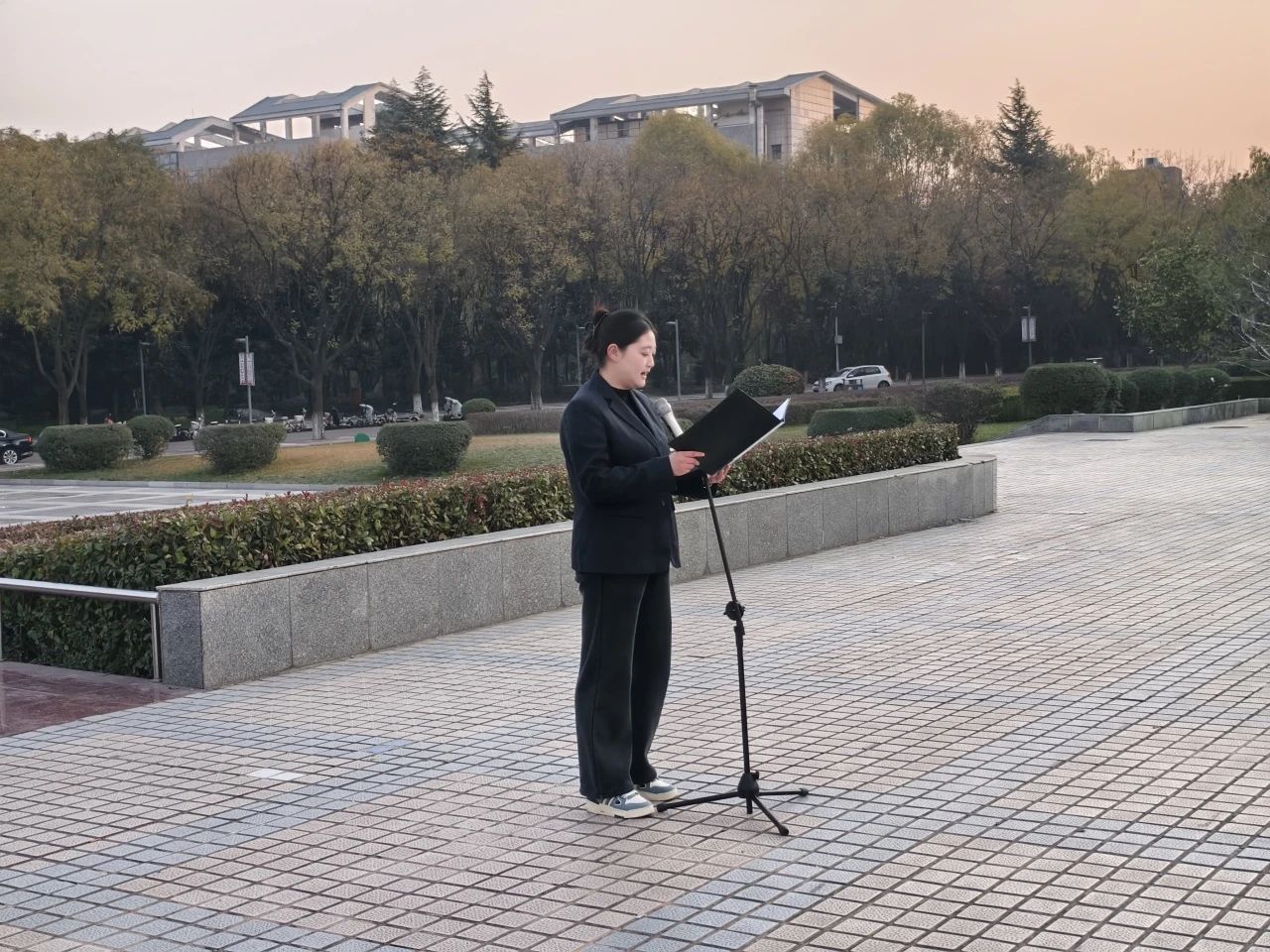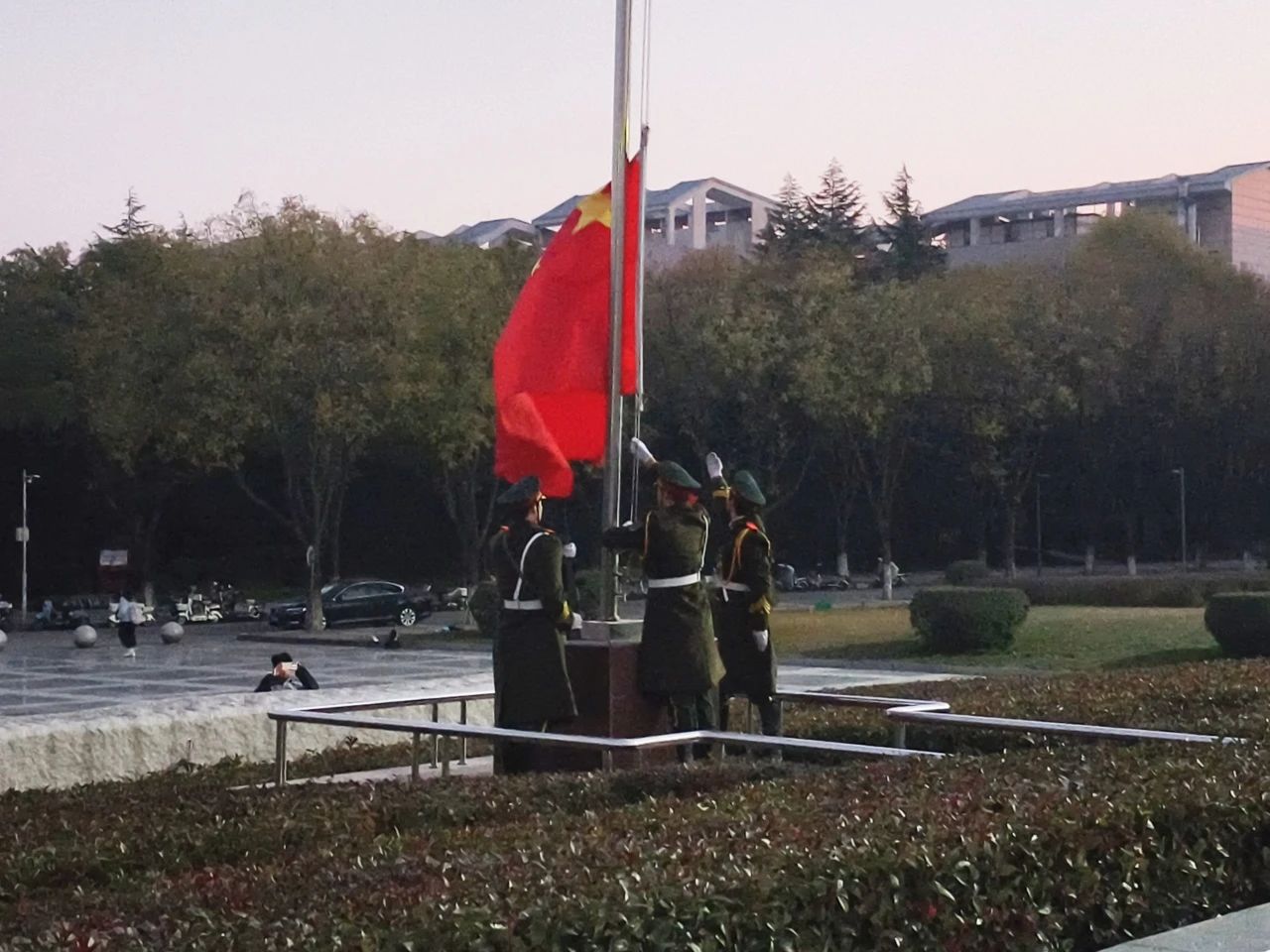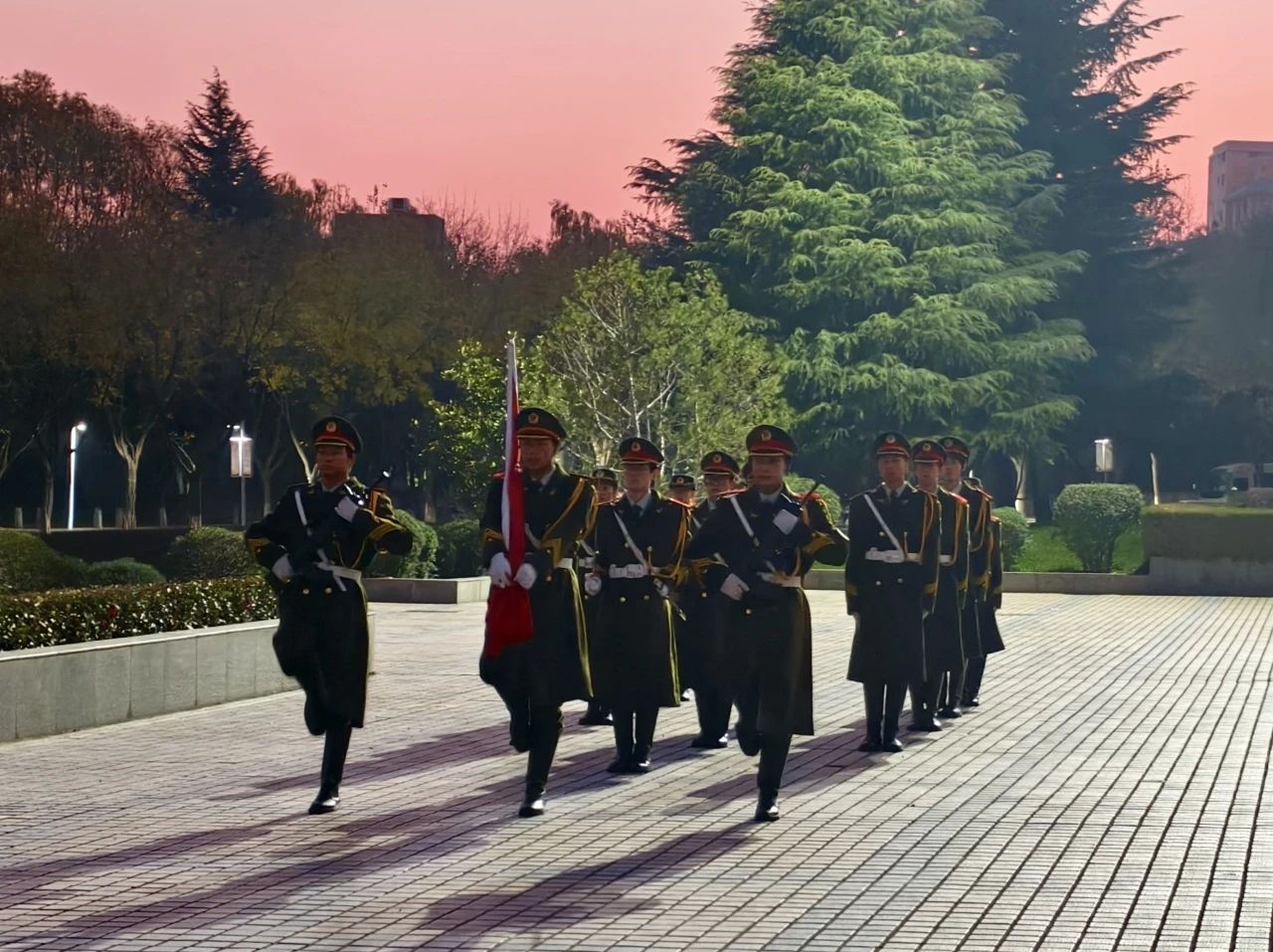 当晨曦初现,国旗护卫队迈着整齐有力地步伐踏入广场,随着雄壮的《义勇军进行曲》在空中回荡,师生们整齐列队,神情庄重,目光紧紧追随冉冉升起的五星红旗。歌声与旋律交织在一起,每一句歌词都承载着对祖国的深情厚意和无限祝福。