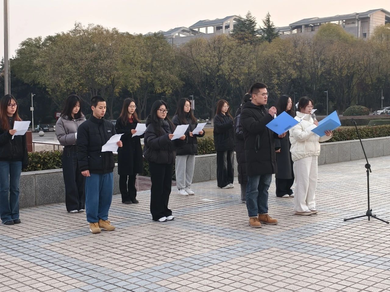 马克思主义学院李丹阳、谢鹏昊等12位同学朗诵诗歌《大写的中国》。他们用文字勾勒出一幅幅生动的画面,让师生们仿佛置身于祖国的怀抱之中,感受到了那份深深的自豪和骄傲。