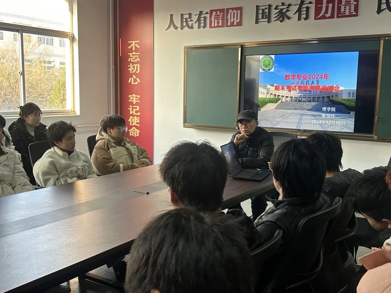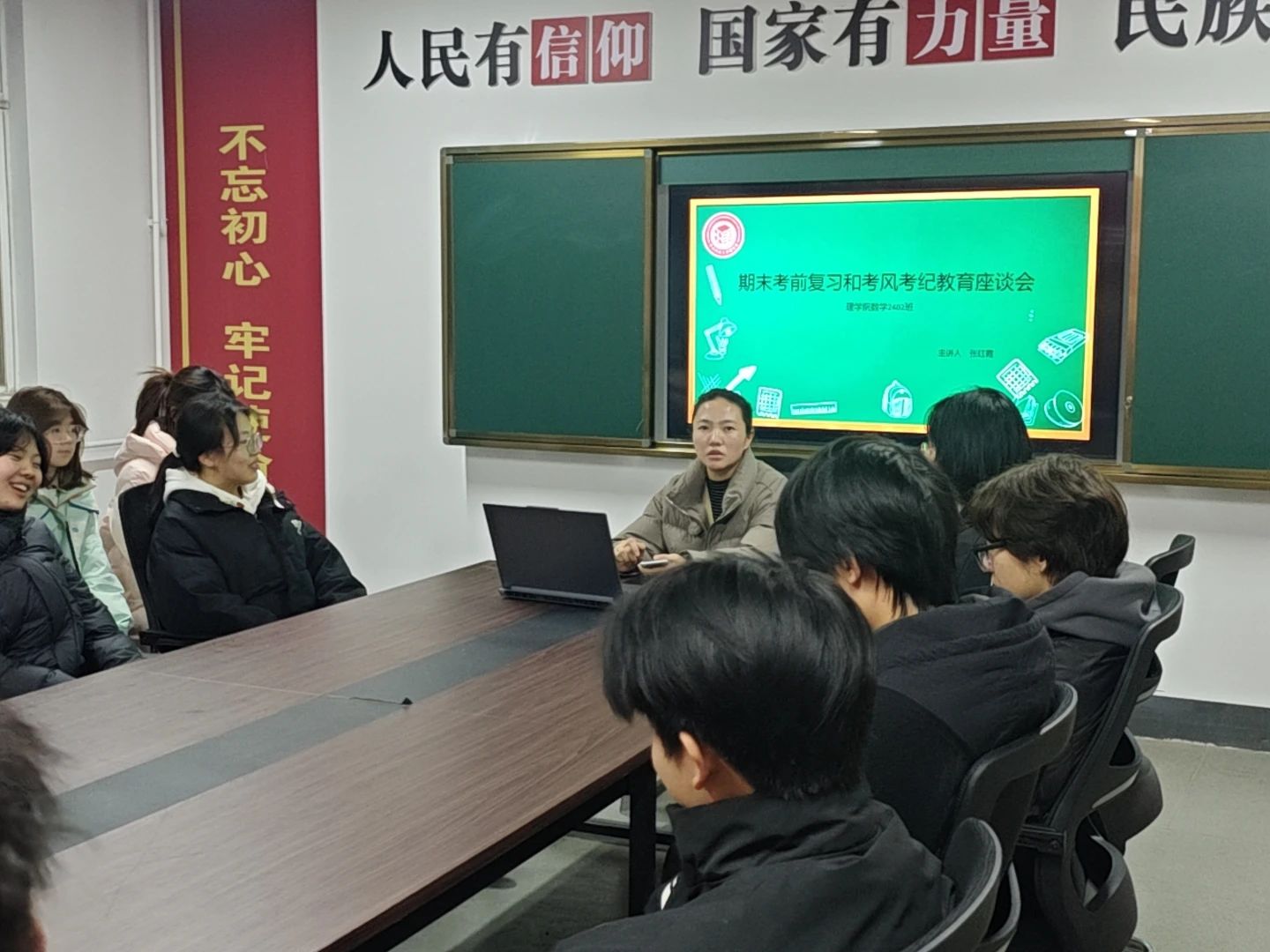 12月16日,AC米兰中文于“一站式”学生社区举办了期末考试考风考纪座谈会,本次座谈会由数学与应用数学2401班班主任姬战怀主持,数学与应用数学2401班参加。