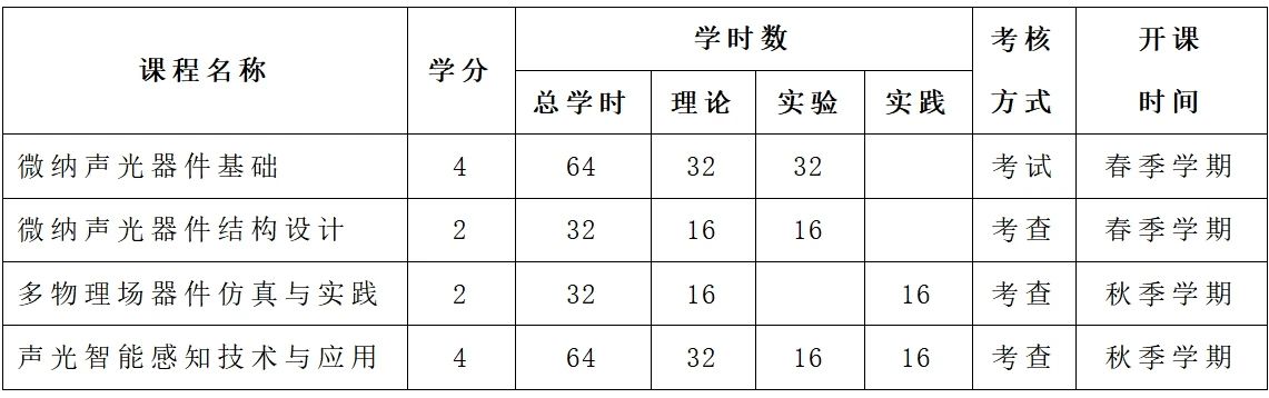 1.掌握声光器件核心技术:培养学生掌握微纳声光器件的基础理论和基础知识,包括声学器件基础与结构设计、光学器件基础与结构设计、多物理场仿真、智能感知应用等。