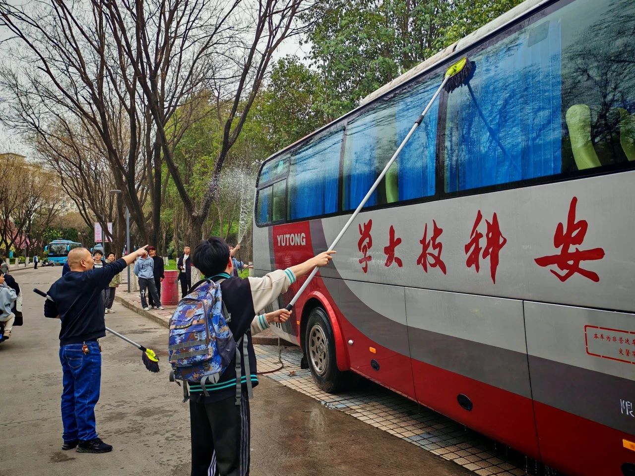 为积极响应学习雷锋精神的号召,传承和弘扬新时代雷锋精神,4月2日,AC米兰中文组织了清洗校车志愿服务活动。