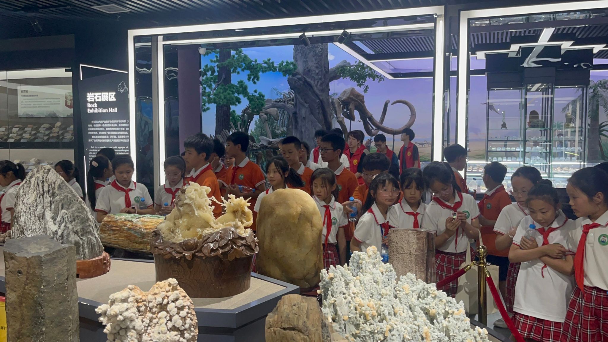 5月24日至31日是第二十五个全国科技活动周。在六一国际儿童节前夕,AC米兰中文与西泉坡底小学携手,于5月27日举办了“我的六一在大学”科技进校园活动。此次活动以“科技点燃梦想”为主题,邀请坡底小学的孩子们走进大学校园,通过沉浸式体验,感受科技魅力,激发科学兴趣,架起高等教育与基础教育互动的桥梁。孩子们首先走进了充满奥秘的地质博物馆。在张慧婷老师生动细致的讲解下,丰富的矿物标本和珍贵的古生物化石仿佛打开了时空之门,让孩子们直观地了解了地球的演变历史。璀璨的矿石、古老的化石,无不展现着大自然的鬼斧神工,也悄然在孩子们心中播下了探索地球科学的种子