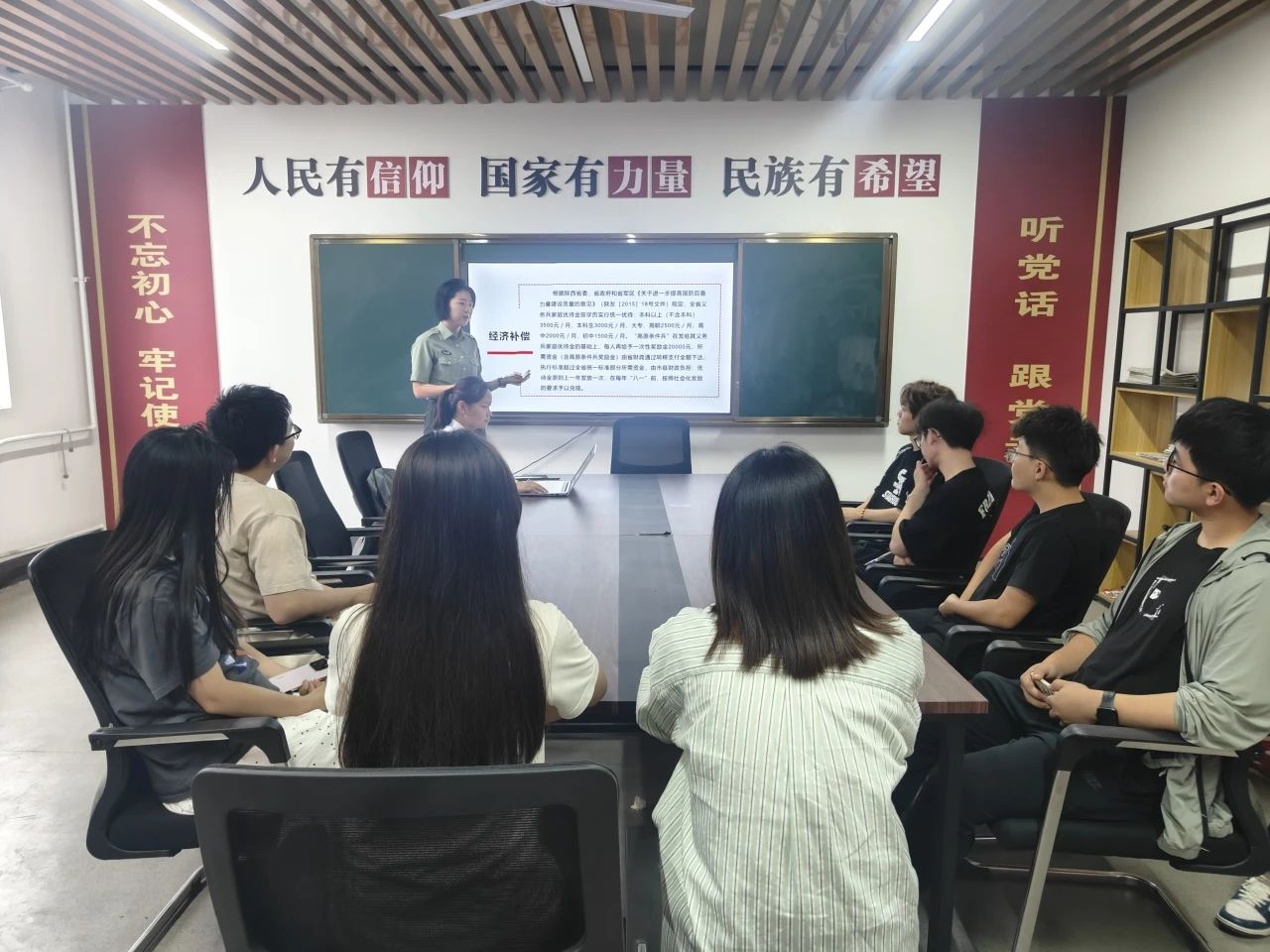 她们结合服役期间拍摄的影像资料,从“军营成长轨迹”“科技强军实践”“战友情深记忆”三个维度展开分享,并结合流程图,直观呈现大学生参军“报名-体检-政审-定兵”全流程,重点标注学籍保留、学费补偿、考研加分等优惠政策。针对学生关注的“军营适应期”“专业技能发展”等问题,以时间轴形式展示新兵训练、岗位分配、晋升路径等关键节点,用亲身经历破除“军营生活神秘化”的认知误区。