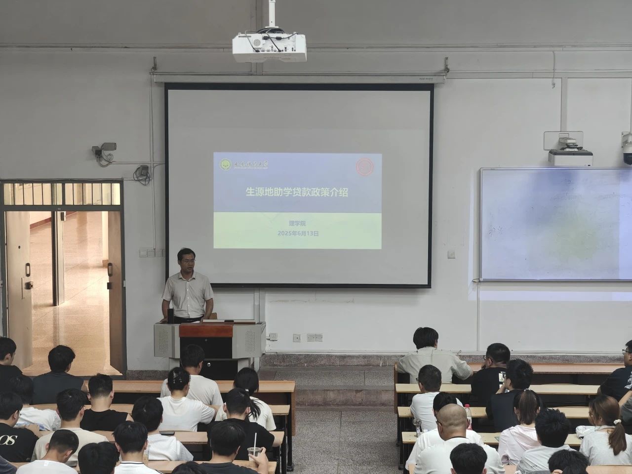侯斌刚就生源地信用助学贷款政策进行详细解读。他结合具体案例,从申请条件、办理流程、还款须知到常见问题答疑,为家庭经济困难学生提供全流程指导,并强调,助学贷款是保障教育公平的重要举措,学院将全力支持符合条件的学生完成学业,希望同学们珍惜机会,心无旁骛投入学习。