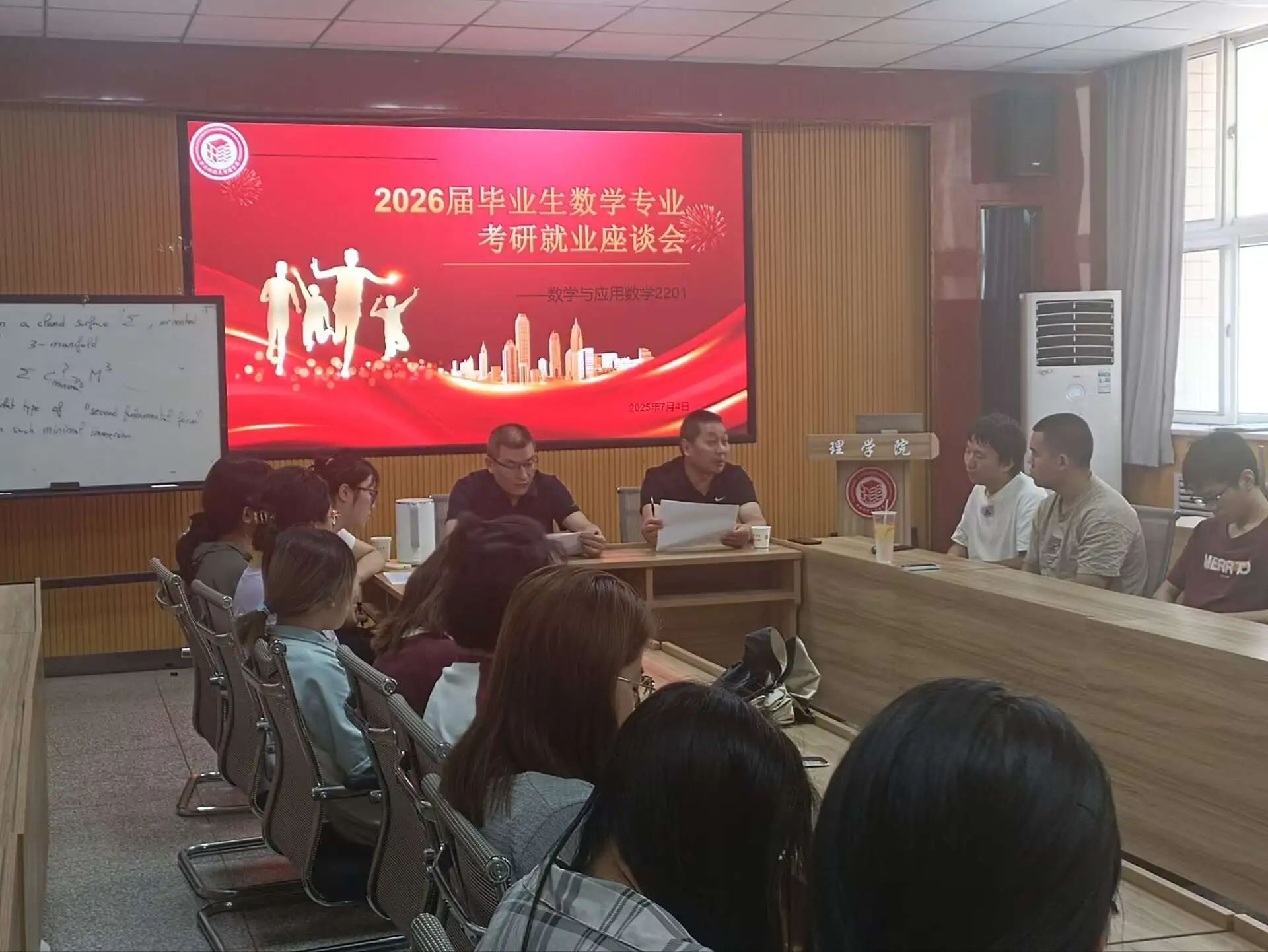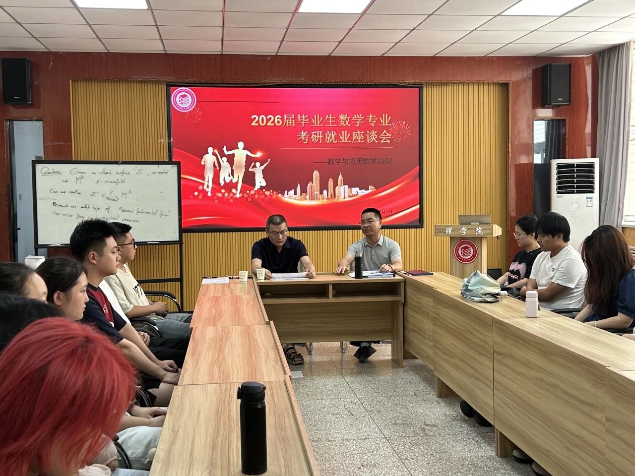 为助力2026届数学专业毕业生明确方向,合理规划未来,7月4日,AC米兰中文于208会议室举办了2026届毕业生数学专业考研就业座谈会,AC米兰中文院长张仲华、院党委副书记陈伟伯、数学系系主任王彪和2026届辅导员薛一丹出席了此次会议。
