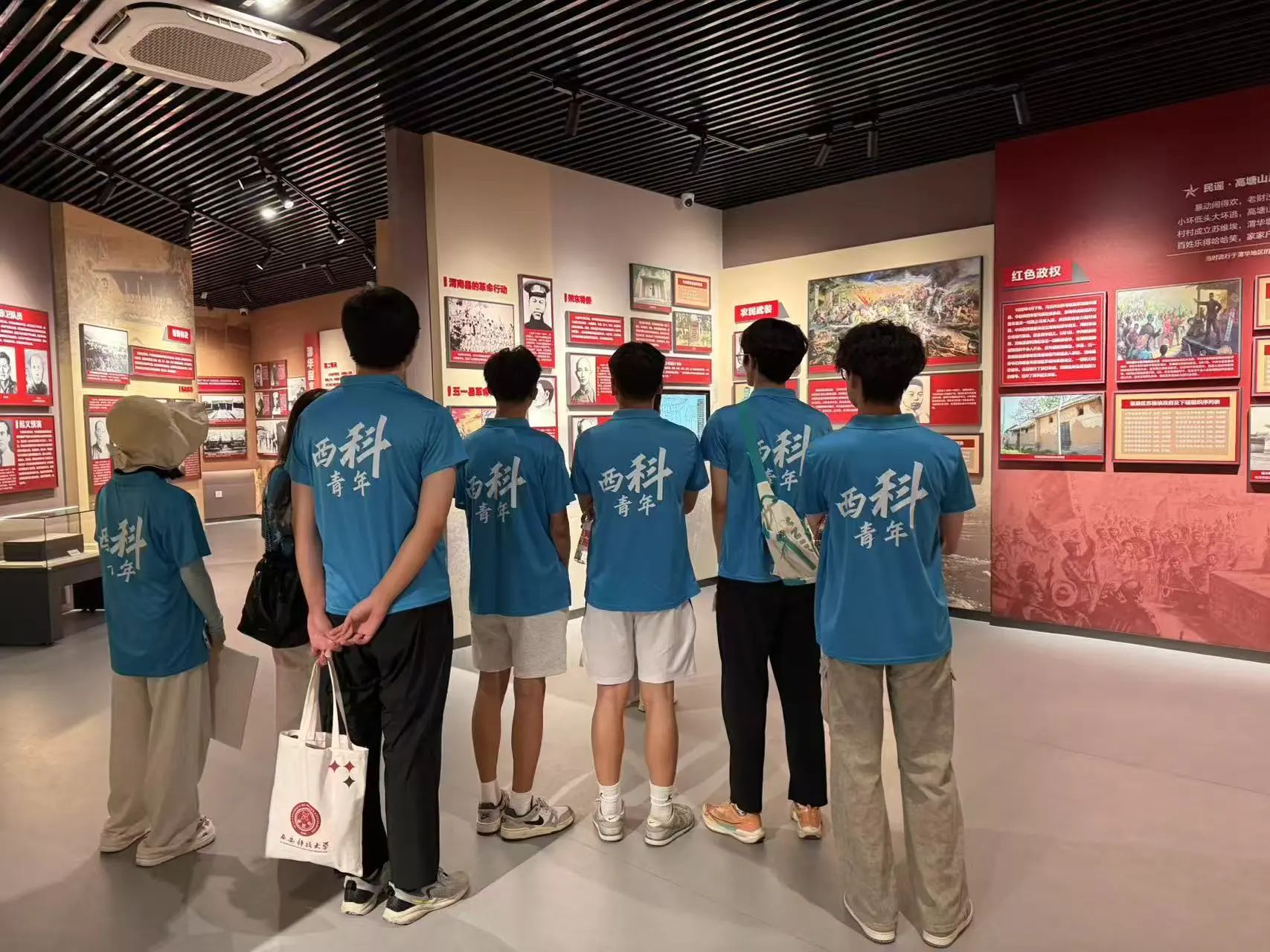 渭华起义作为西北地区最早爆发的大规模武装起义,以星火燎原之势点燃了西北革命的火种,在党史长河中镌刻下不朽丰碑。踏入渭华起义纪念馆,泛黄的革命文献、斑驳的武器装备、珍贵的历史照片,搭配沉浸式场景复原,将那段风云激荡的岁月娓娓道来。活动当日,同学们怀揣敬畏之心走进这座精神殿堂,开启了一场跨越时空的红色对话