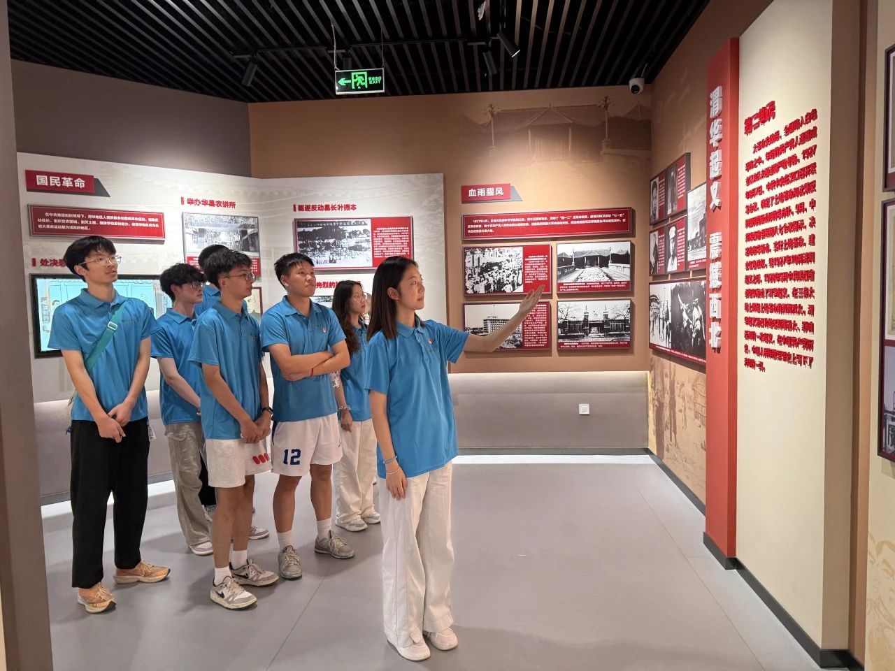 为了让同学们更深入地了解渭华起义的历史背景、重要意义以及革命先辈的英勇事迹,本次活动特别开设了 “红色课堂”。数学与应用数学2402班王沂廷以纪念馆为课堂,现场为同学们进行讲解。她结合馆内的展品,从渭华起义的起因、经过、结果等方面进行了详细阐述,生动讲述了革命先辈们在艰苦卓绝的环境中,为了理想信念不惜抛头颅、洒热血的感人故事。