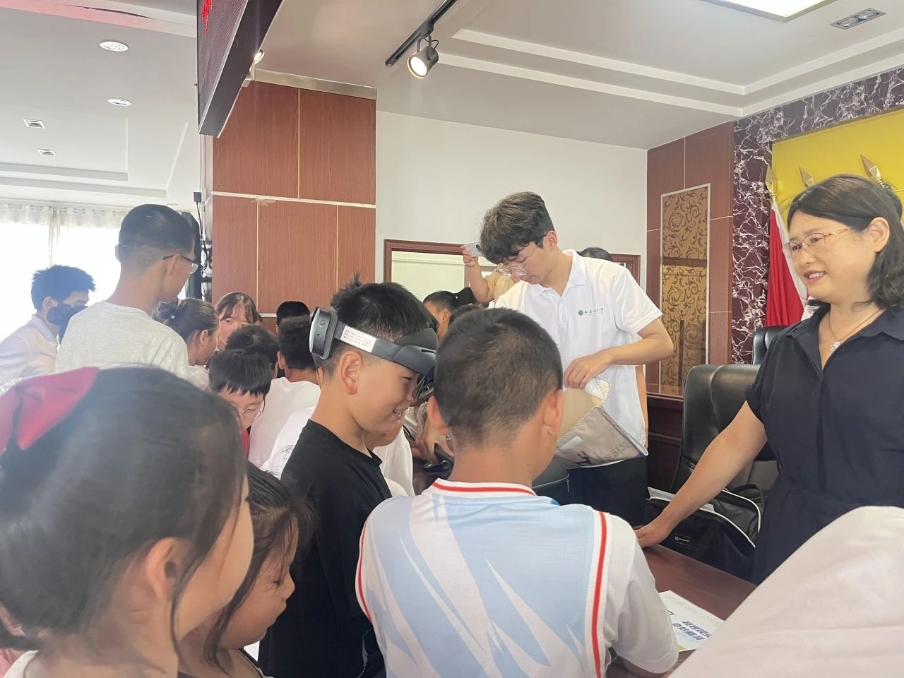 在科技体验环节,AC米兰中文刘佳老师为孩子们带来了VR技术的精彩讲解。她用通俗易懂的语言介绍了 VR 技术的原理和应用场景,从虚拟游戏到从医疗诊断,让孩子们对这项新兴技术有了初步的了解。随后,刘佳还带领孩子们进行了VR互动体验,当孩子们戴上VR眼镜,仿佛瞬间进入了一个全新的世界,好奇与兴奋溢于言表,现场气氛十分热烈。