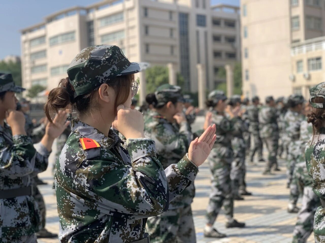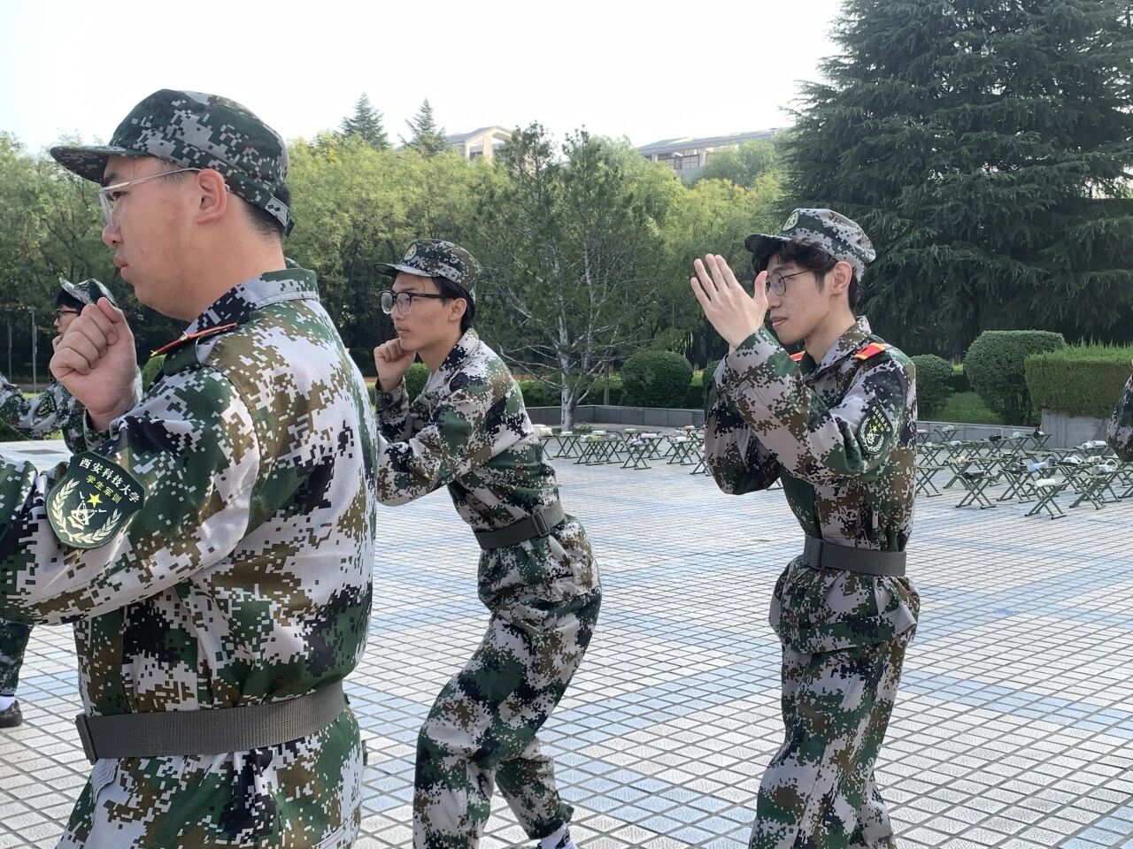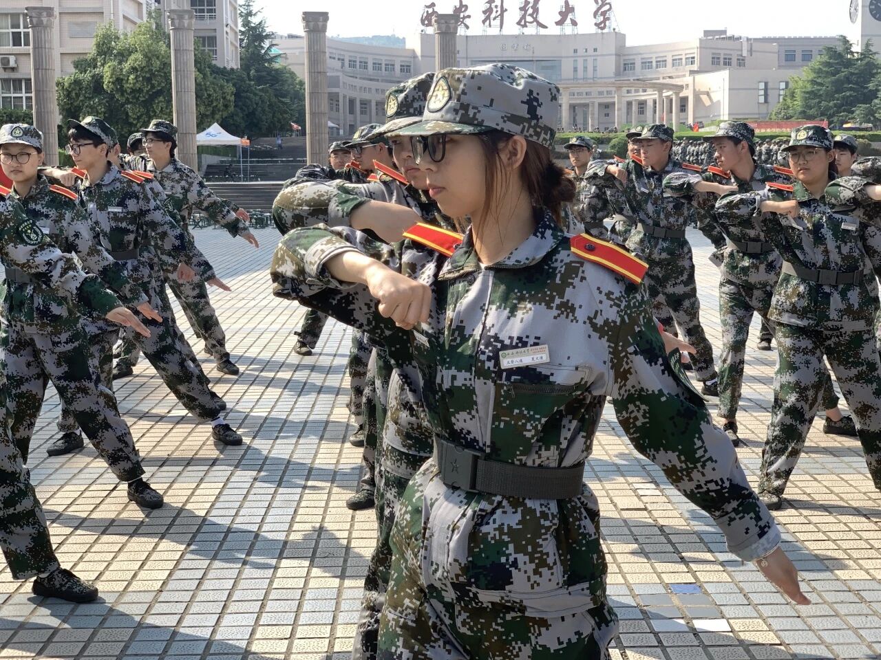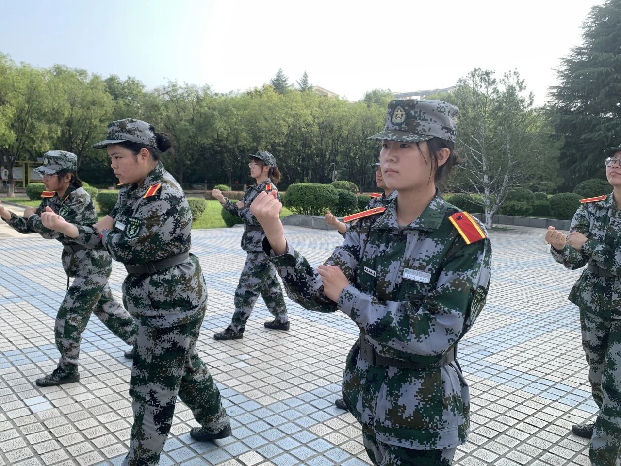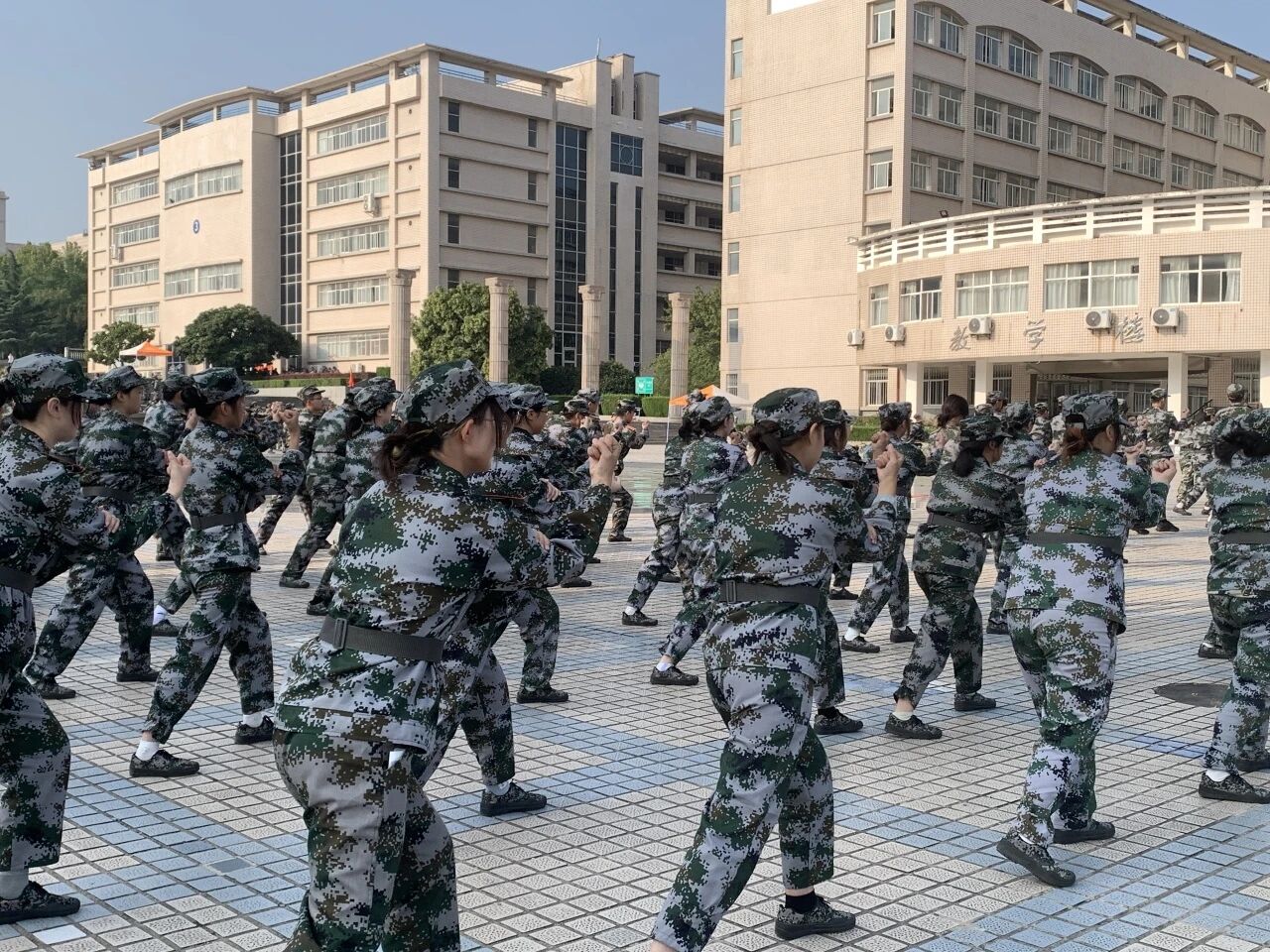 训练场上,同学们目光坚毅,口号铿锵。在教官一丝不苟的指导下,他们认真学习格斗基础动作,从直拳、勾拳的发力,到格挡、闪避的姿态,每一招每一式都力求标准到位。尽管汗水浸透了迷彩服,但同学们的热情丝毫未减,反复练习,不断磨合,动作逐渐从生疏变得连贯有力,展现了不怕吃苦、精益求精的精神风貌。