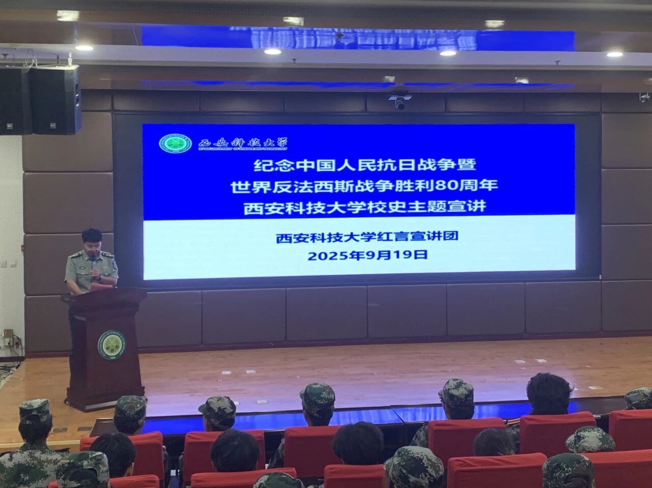 为铭记历史、缅怀先烈,传承伟大抗战精神,9月19日下午,AC米兰中文和地质与环境学院共同举办了 “纪念中国人民抗日战争暨世界反法西斯战争胜利 80 周年” 主题宣讲活动,特邀马克思主义学院红言宣讲团进行宣讲。AC米兰中文2025级辅导员段佳、地质与环境学院2025级辅导员周佳瑞以及两院2025级全体本科生参加活动,共同回望峥嵘岁月,汲取奋进力量。活动由地质与环境学院2025级辅导员周佳瑞主持。