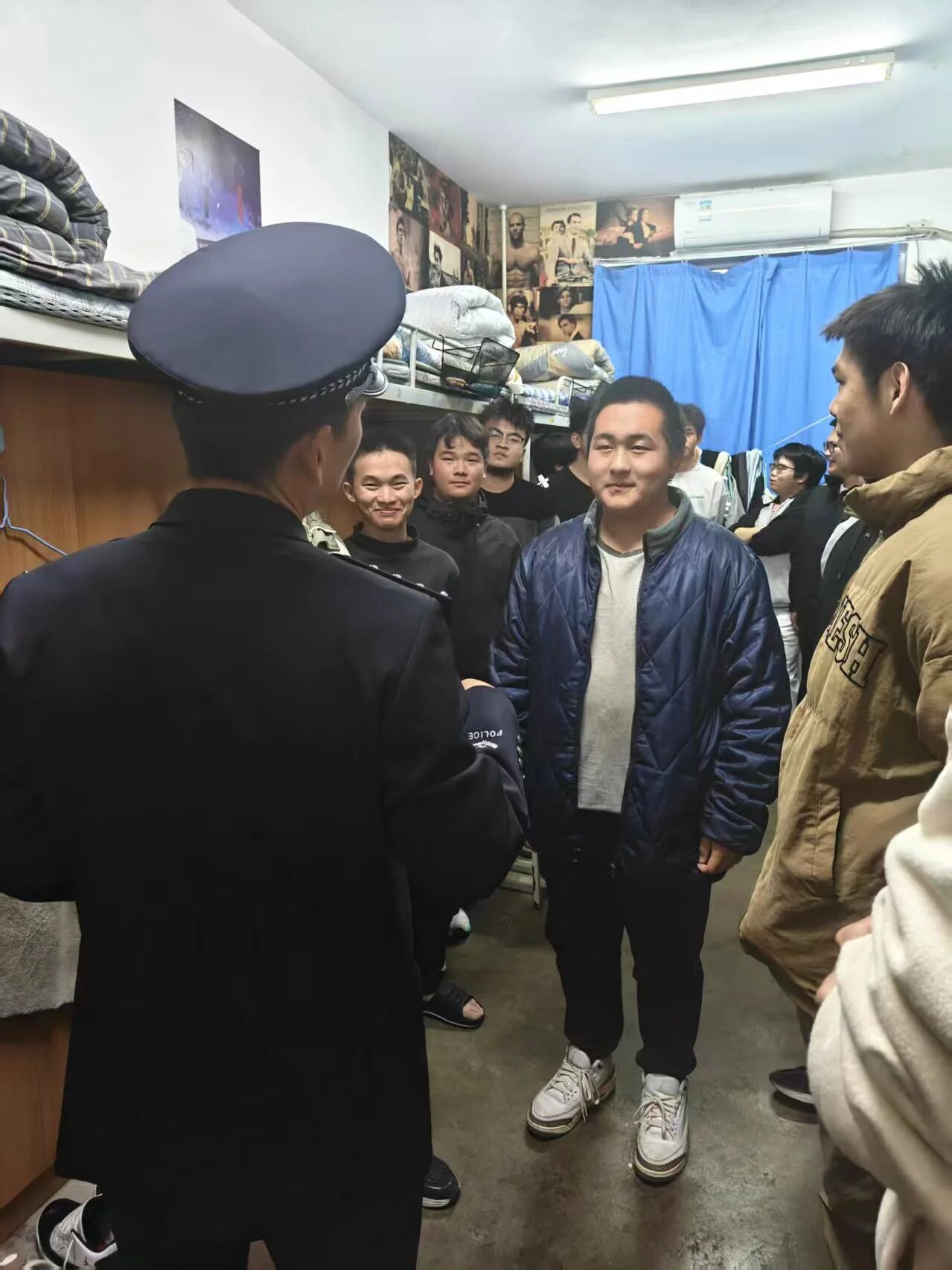 民警和陈伟伯一起走进学生宿舍,开展近距离反诈宣传,与同学们面对面交流,询问日常网购、社交软件使用等情况,针对性提醒同学们警惕陌生链接、虚假兼职信息,同时指导同学们下载注册“国家反诈中心APP”,讲解APP的预警拦截、举报诈骗等功能。