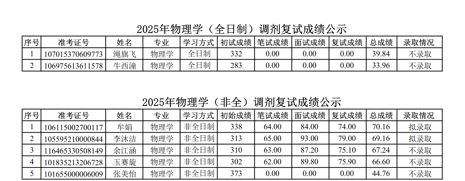 注:后期如有指标,将对符合要求的考生(具体要求见官网:/index.htm),依次递补。